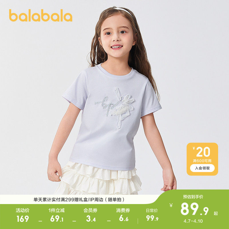 巴拉巴拉童装儿童短袖女童t恤轻薄款夏速干凉感内搭休闲百搭上衣
