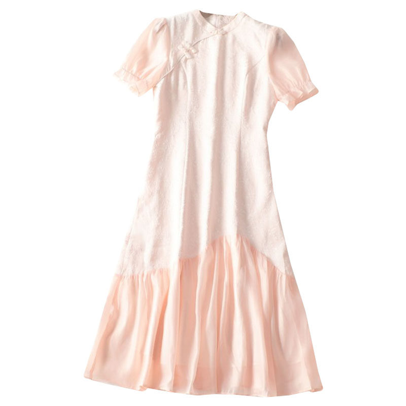 411546南油高端轻奢女装超值品质国风中式女人味夏长款短袖连衣裙