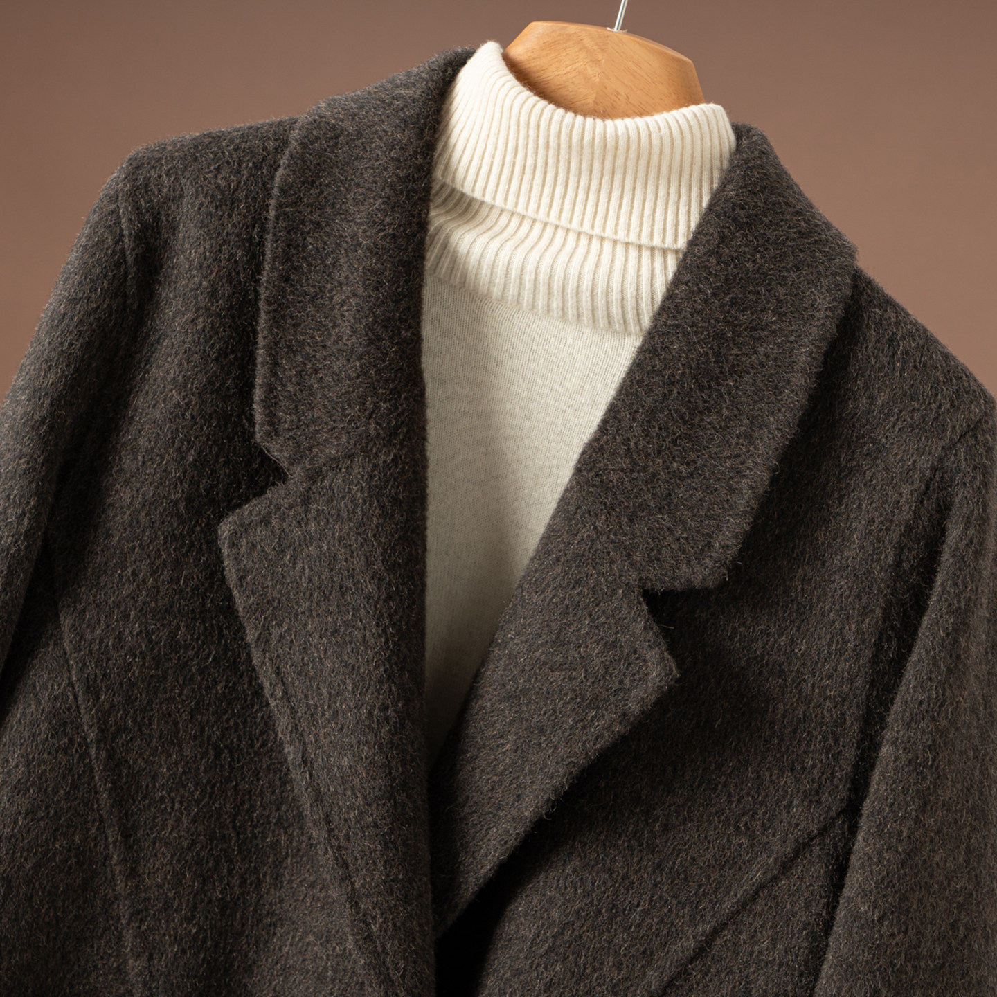 2025秋冬双面羊绒大衣女牛角扣宽松中老年妈妈装加厚羊毛呢子外套