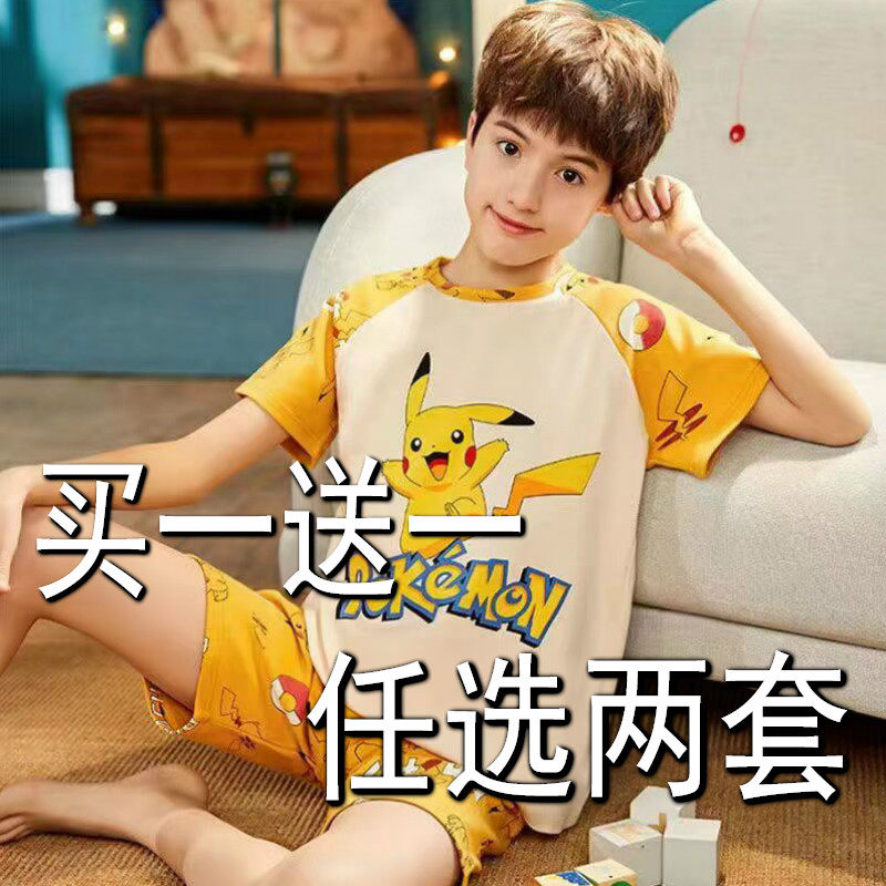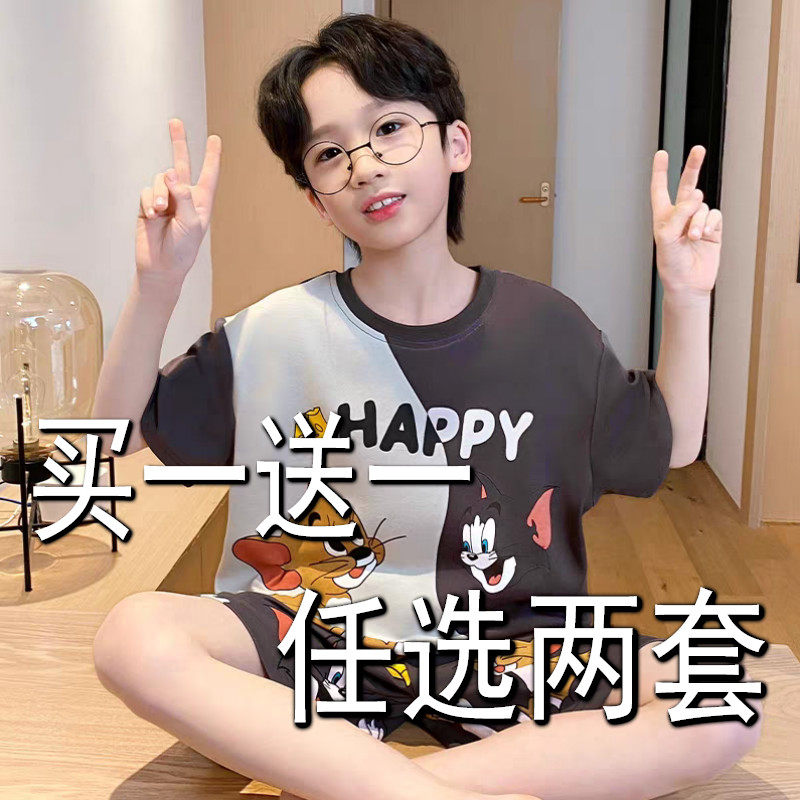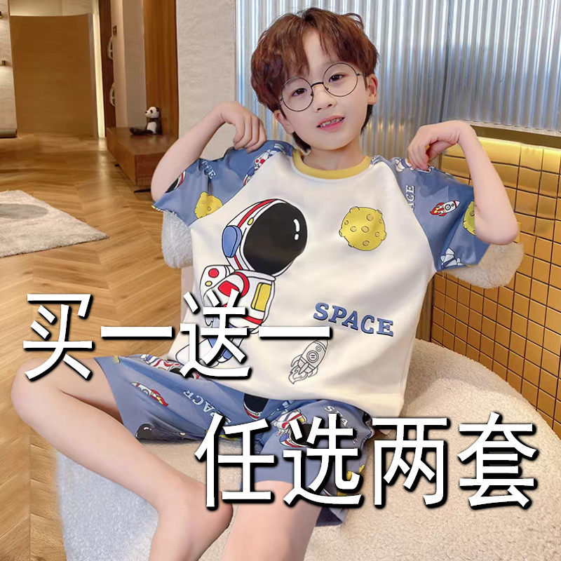 儿童短袖短裤薄款套装睡衣夏季男童纯棉卡通男孩空调服宝宝家居服