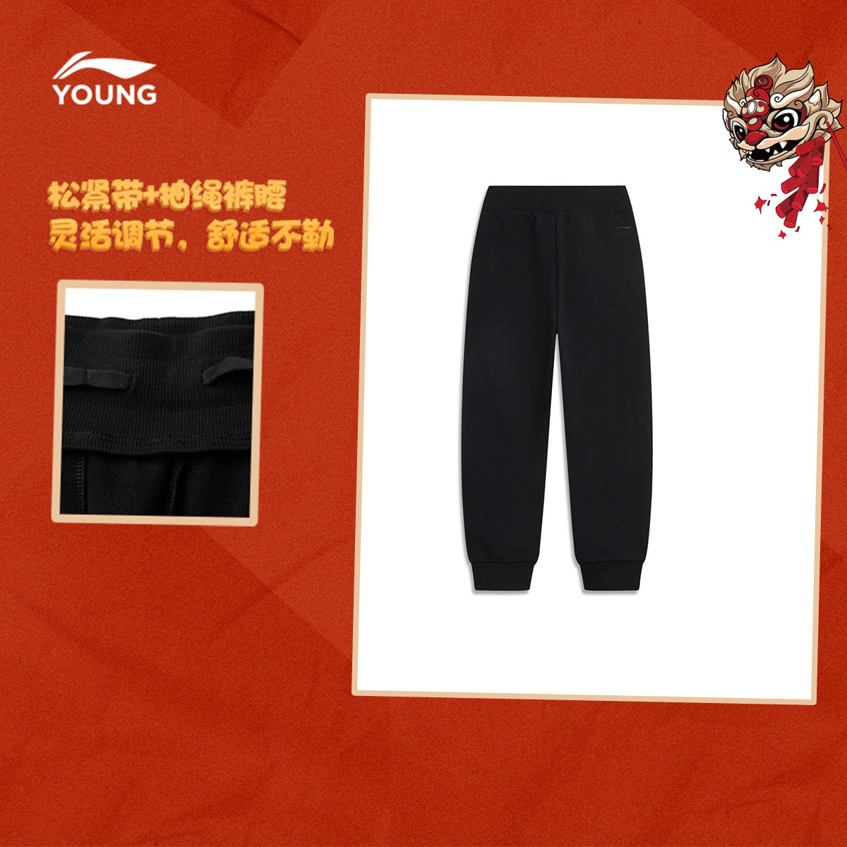 李宁新年款裤子过年卫裤春秋款女童装中大童小女孩青少年裤子春装
