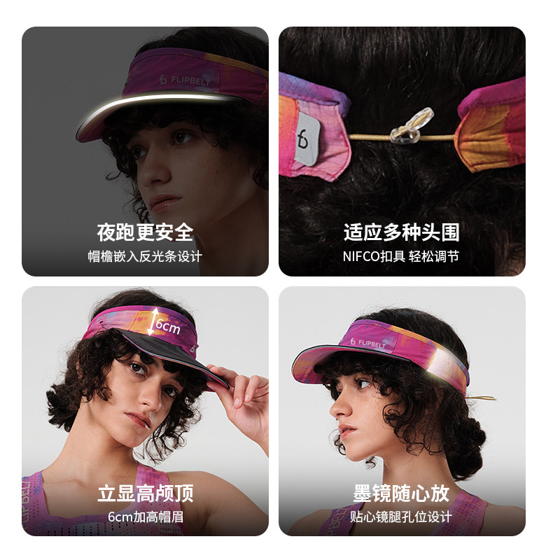 FlipBelt飞比特跑步空顶帽马拉松专用超轻止汗防晒太阳帽女插眼镜