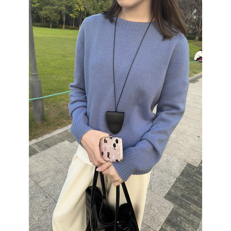梅子色毛衣女款2026新款秋冬季宽松圆领内搭上衣绵羊毛打底衫