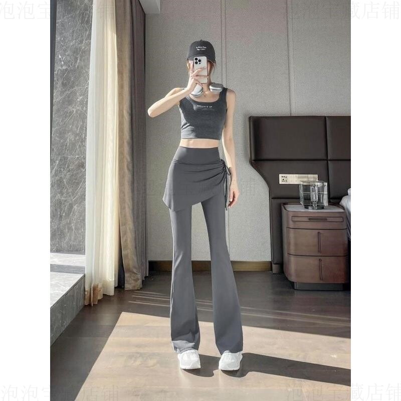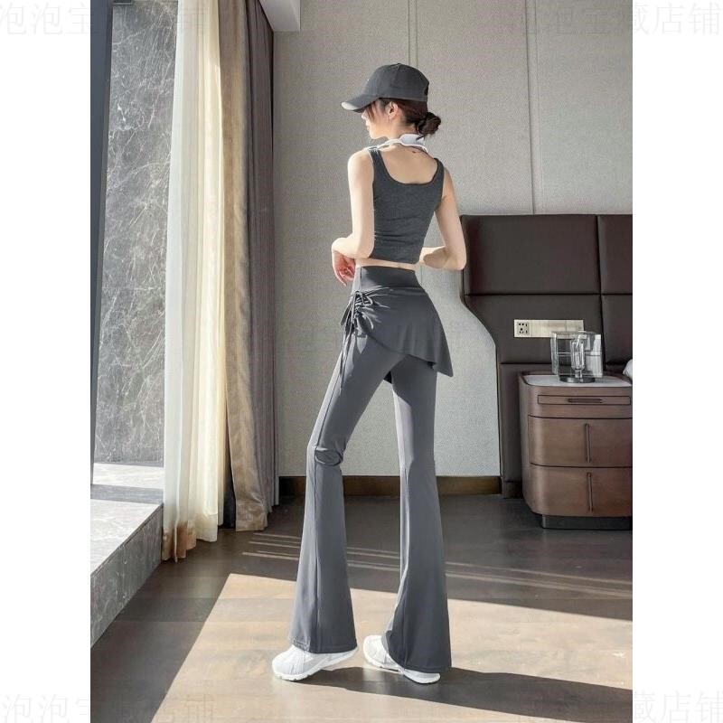 瑜伽裤带屁帘套装假两件瑜伽裤微喇女遮挡裙喇叭健身裙子的裤子11