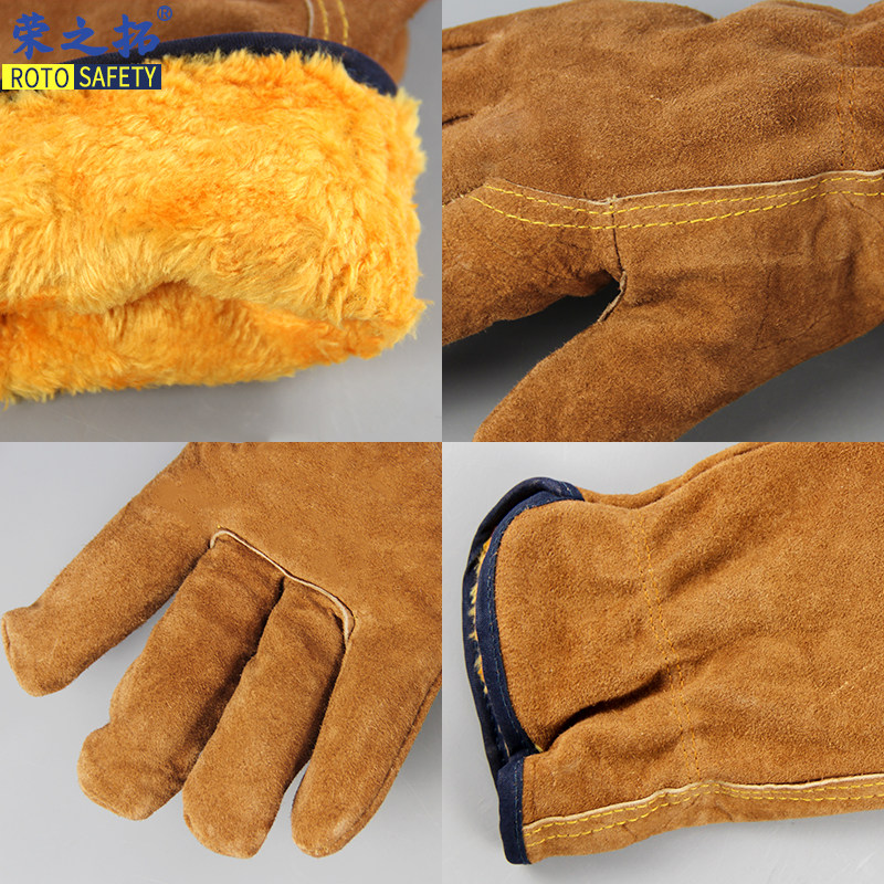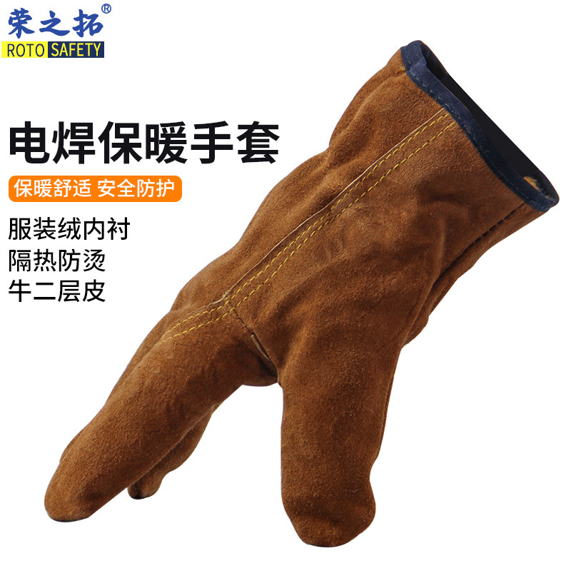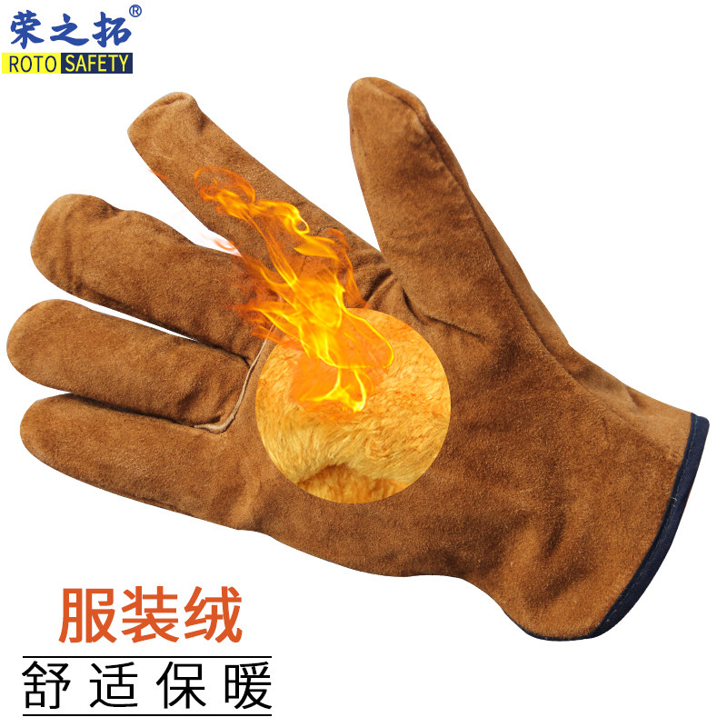 加厚电焊加绒保暖手套牛皮耐磨耐低温牛二层焊接搬运防刺防护焊工