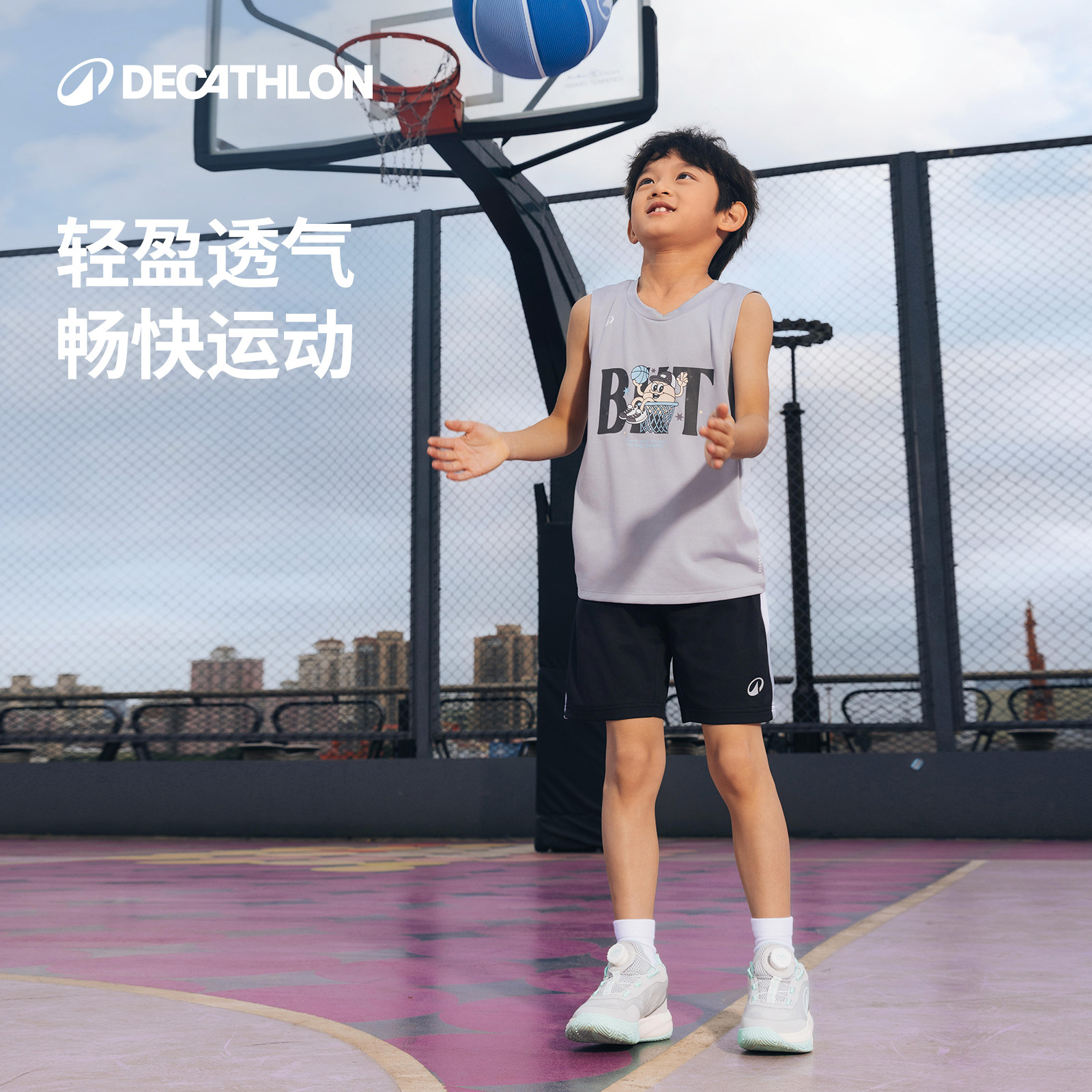 迪卡侬儿童篮球服男童印花无袖背心透气速干运动小学生青少年CST2
