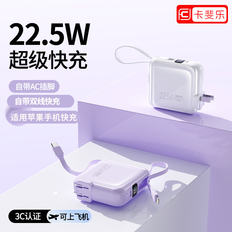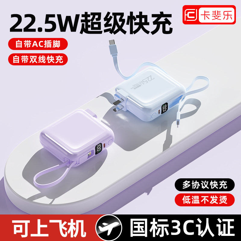 充电宝3c认证可上飞机2026新款大容量20000毫安快充自带双线插头适用苹果17手机专用移动电源官方旗舰店正品
