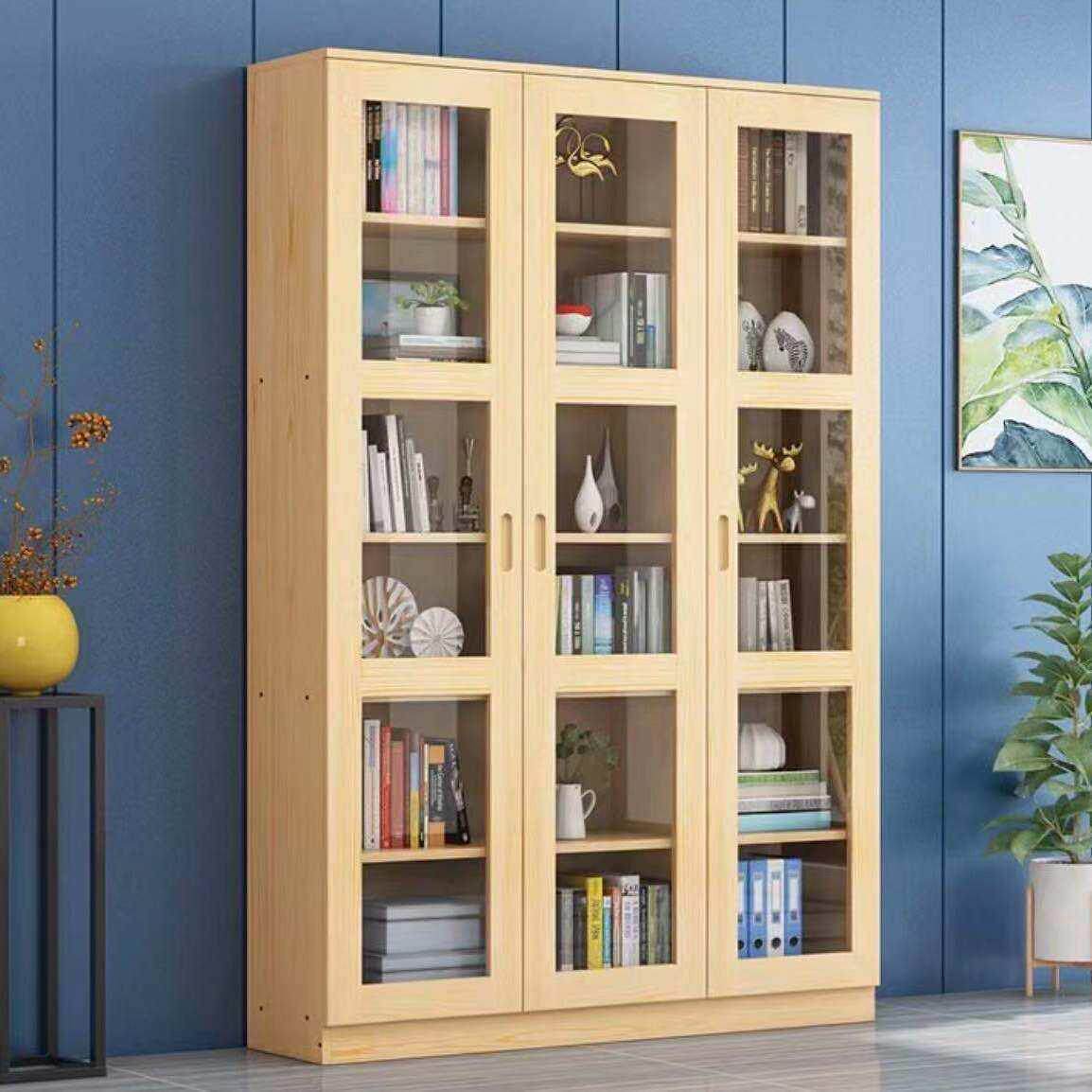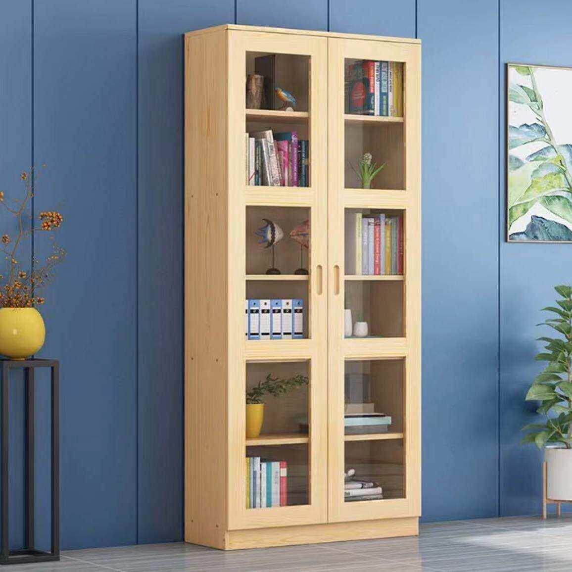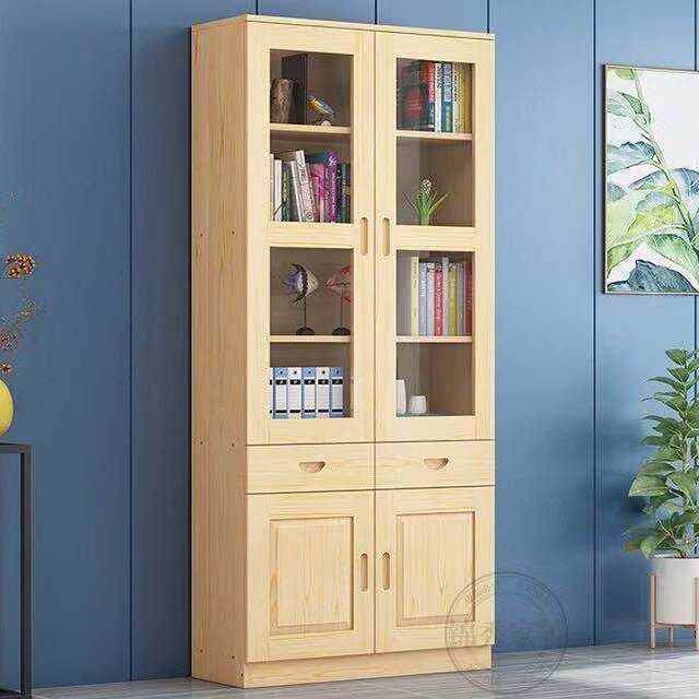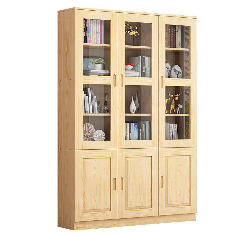 实木带玻璃门书柜书架自由组合松木特价书橱定制柜子置物架收纳柜