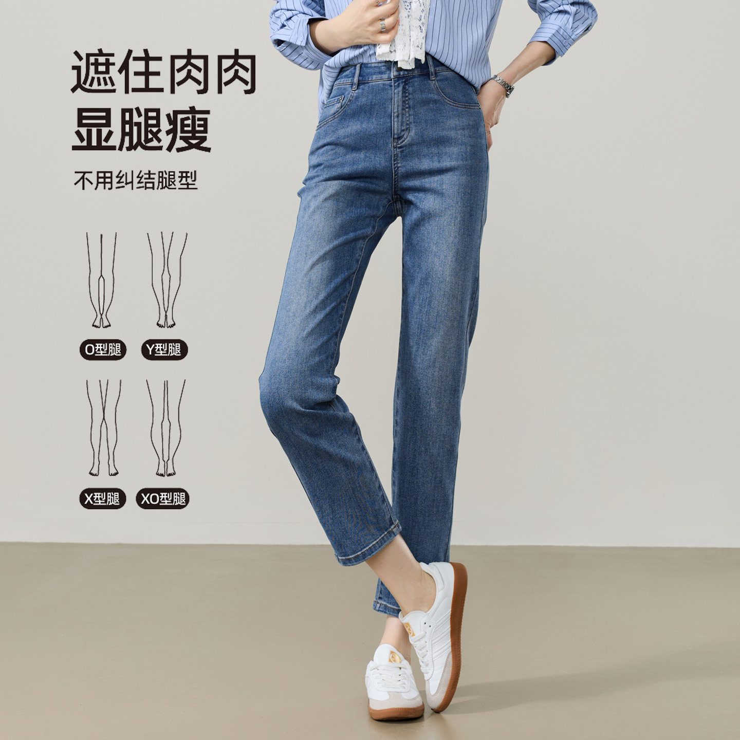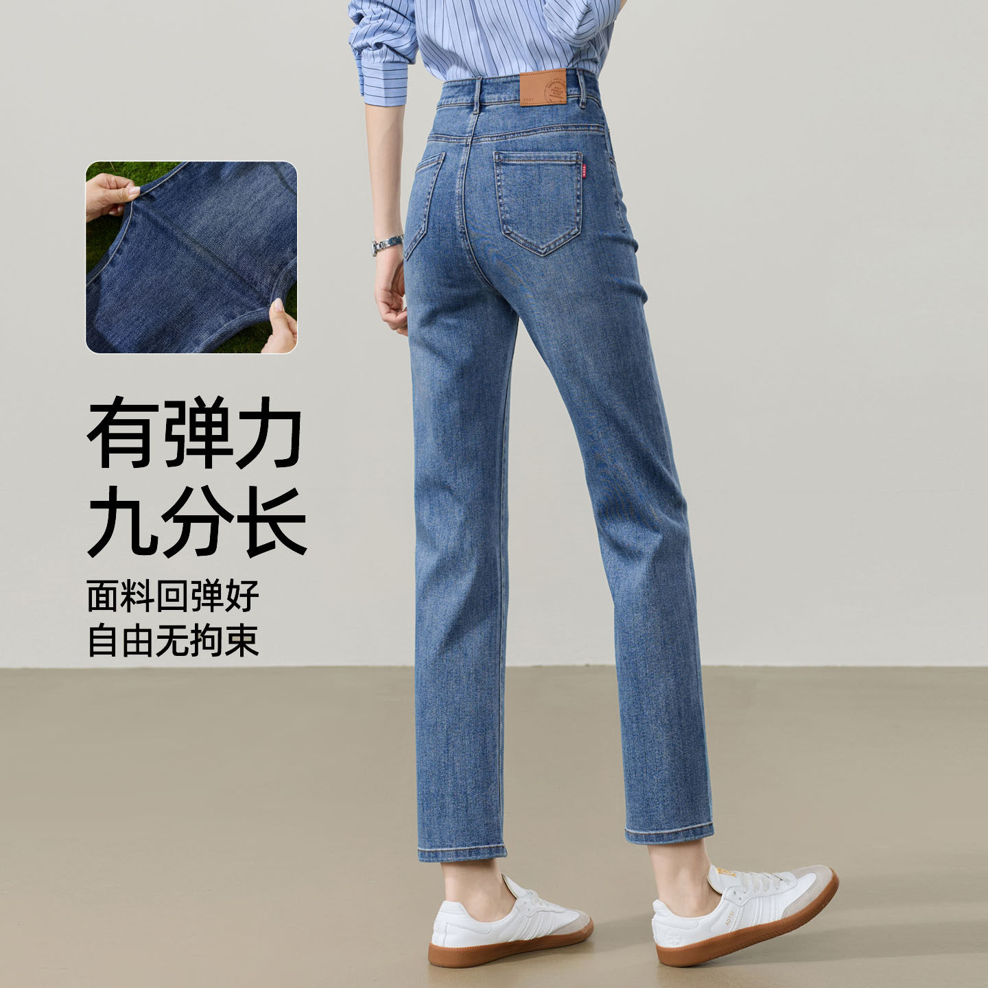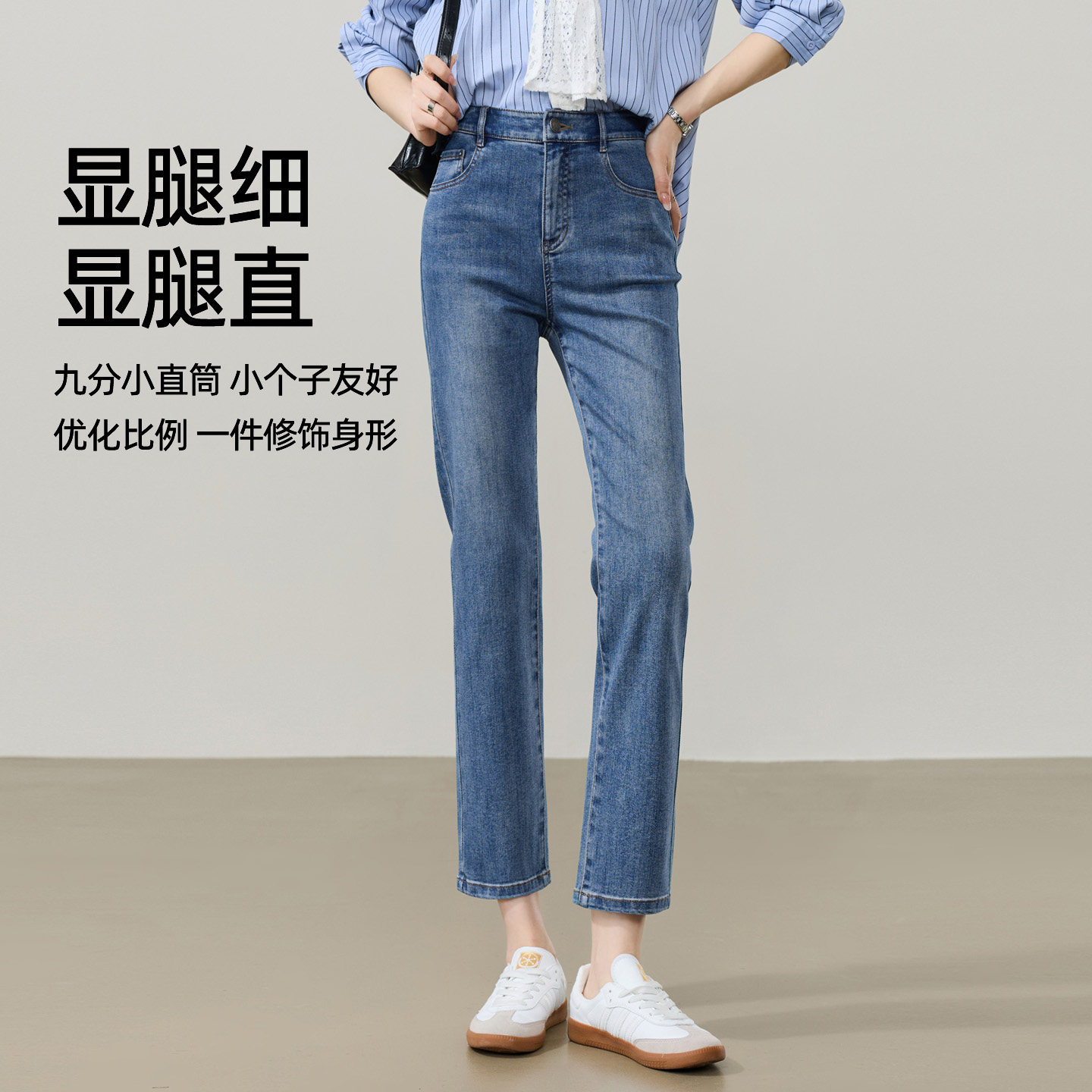 逸阳九分直筒牛仔裤女2026春季新款高腰宽松弹力显瘦小个子烟管裤