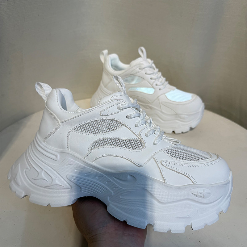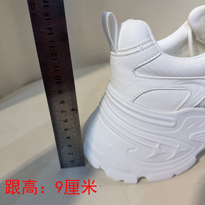 8cm真皮老爹鞋女2026夏季厚底增高透气网面白色休闲鞋网纱小白鞋