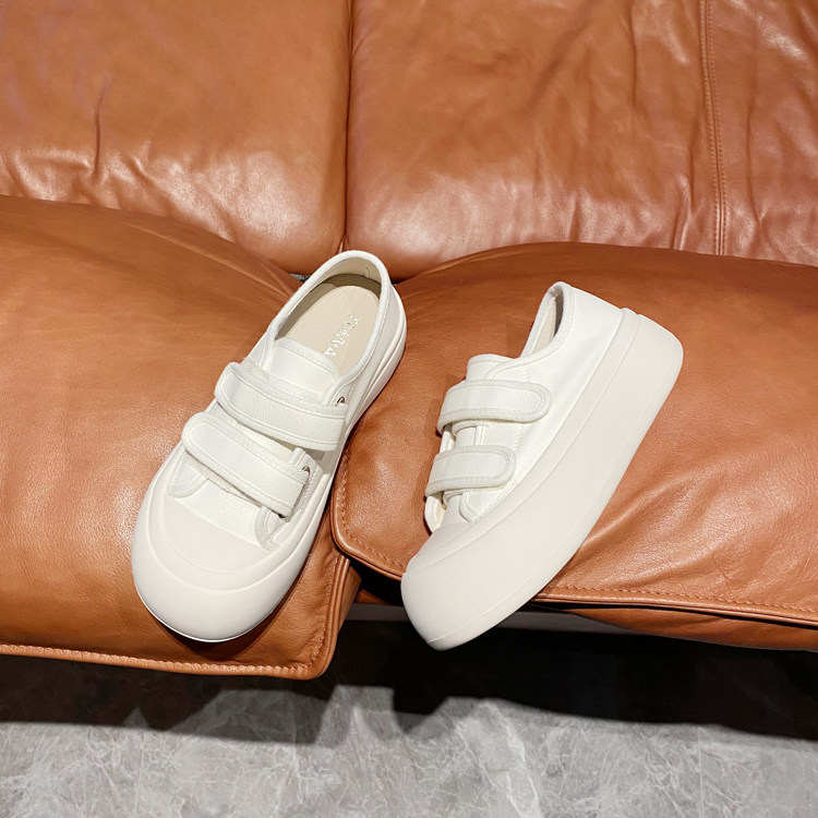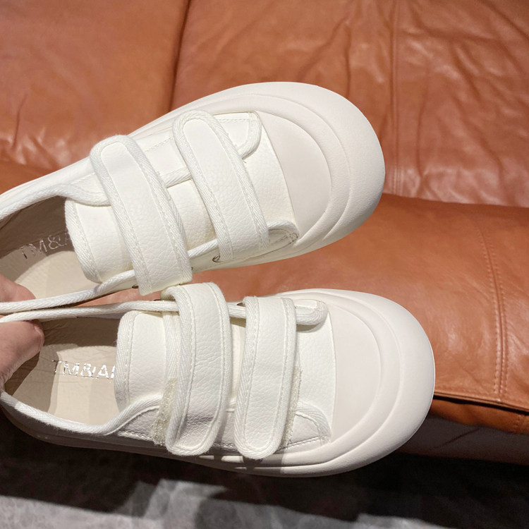 小奶油~真皮厚底魔术贴小白鞋女2026春新款休闲板鞋学生运动女鞋