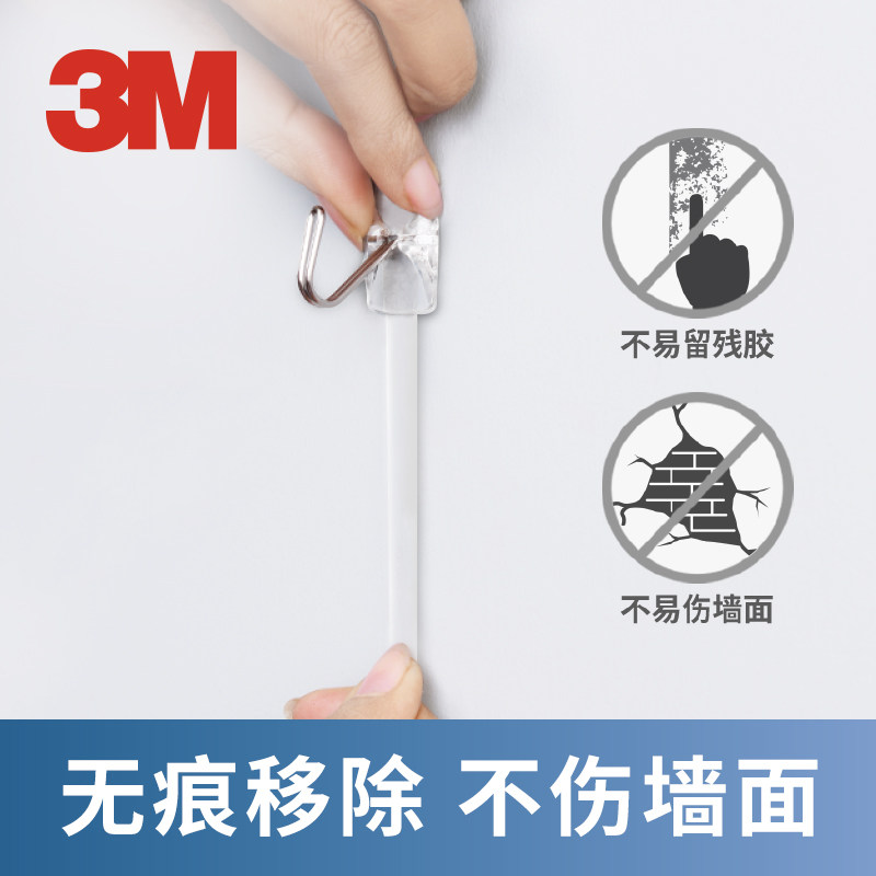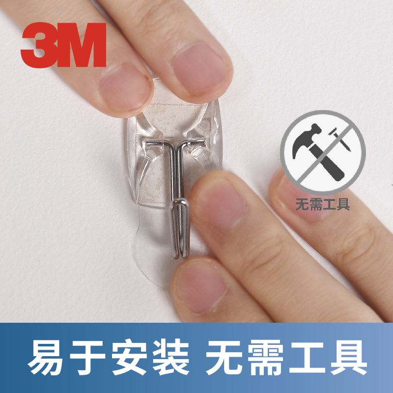 3M高曼无痕挂钩透明免打孔强力粘胶不伤墙面挂钩子小号钩迷你粘钩