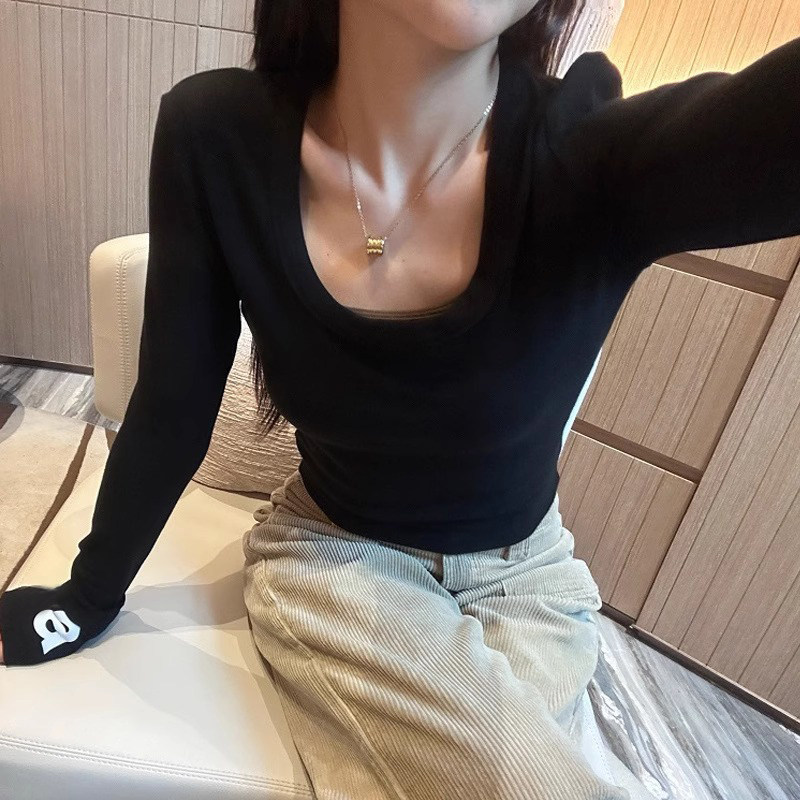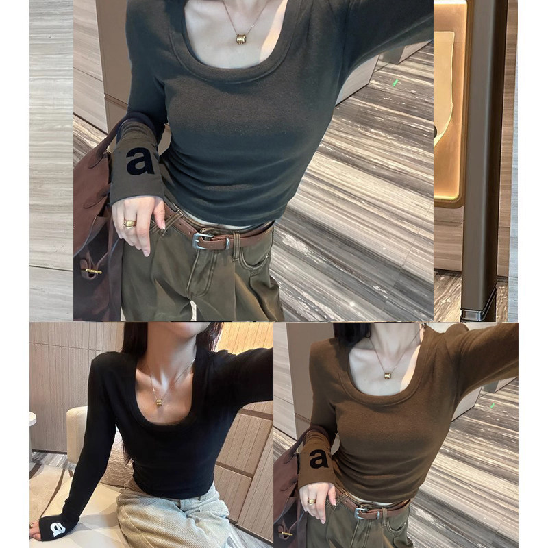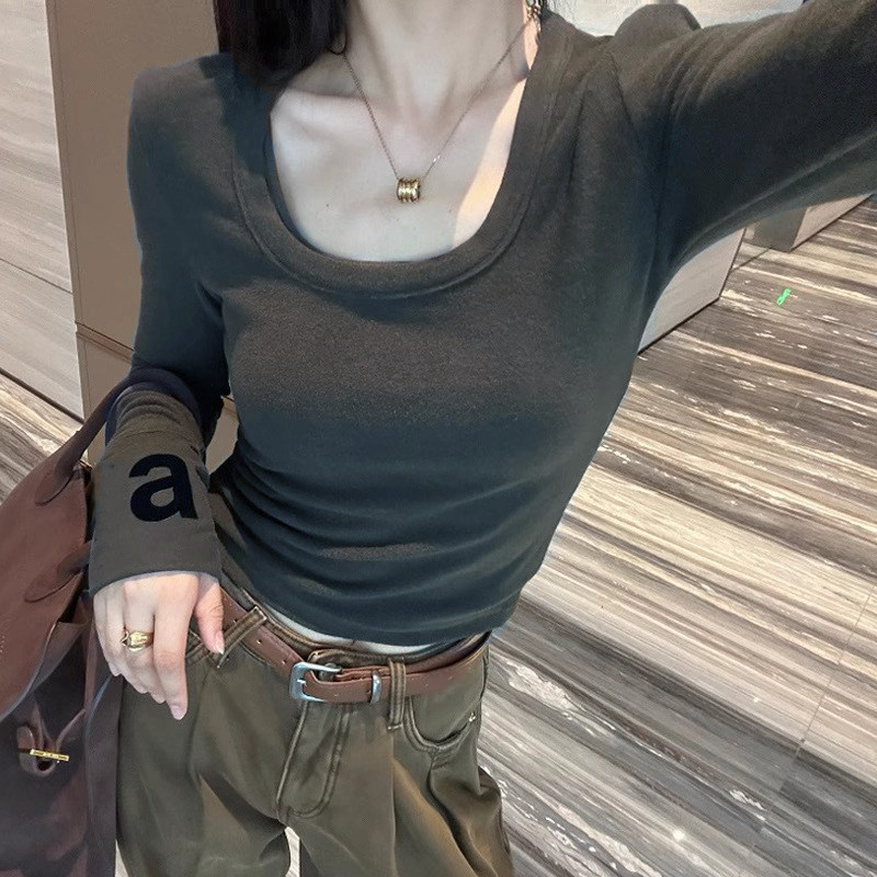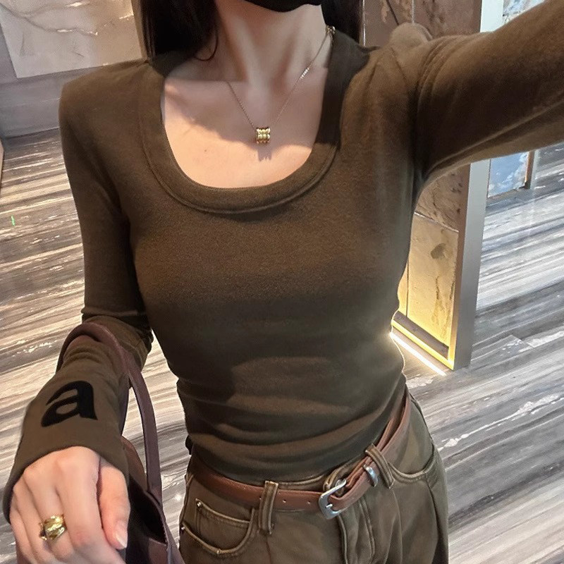 加厚德绒长袖t恤女U领加绒打底衫女秋冬内搭可外穿高级感修身上衣