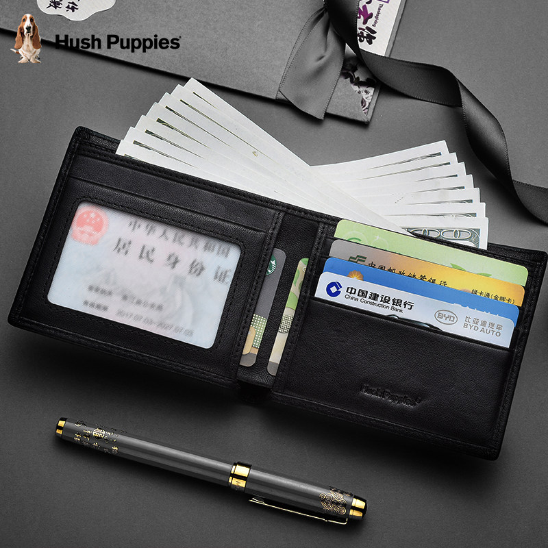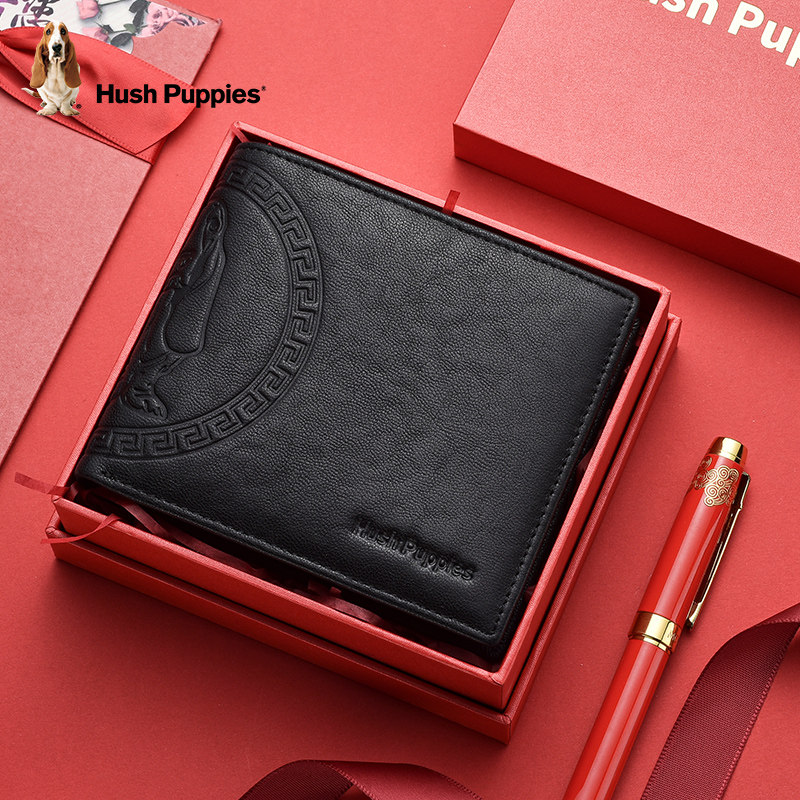 暇步士真皮钱包男士新款短款商务休闲品牌压花钱夹礼盒装时尚简约