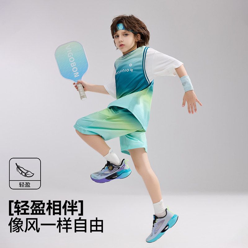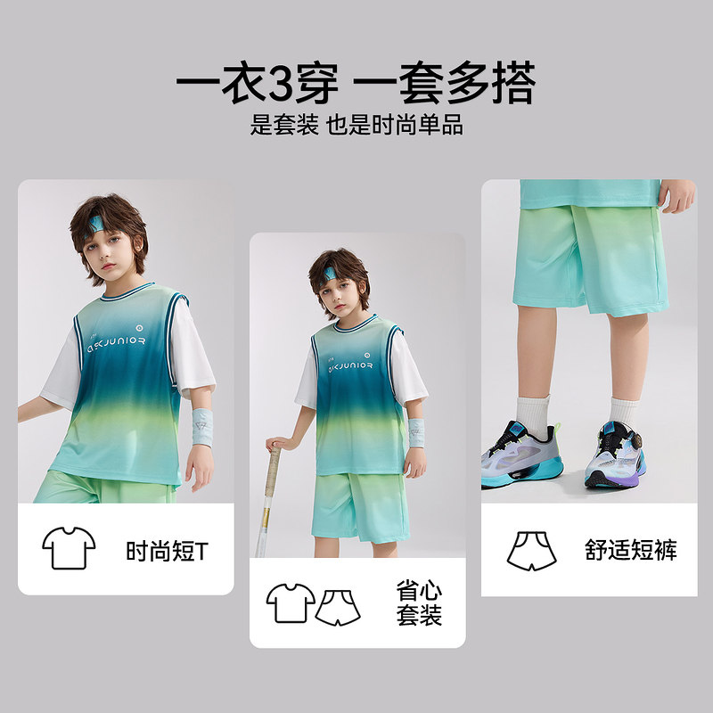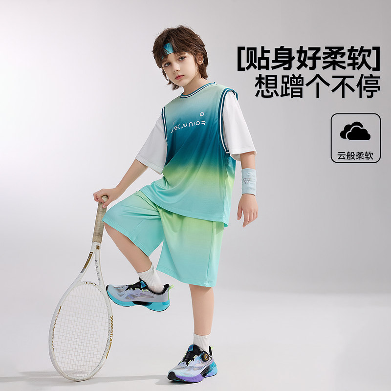 ask速干夏季青少年假两件短袖T恤男大童短裤套装两件装