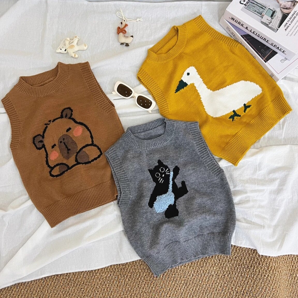 新款秋冬儿童毛衣马甲韩版洋气卡通男女童外穿可爱马夹坎肩潮童装