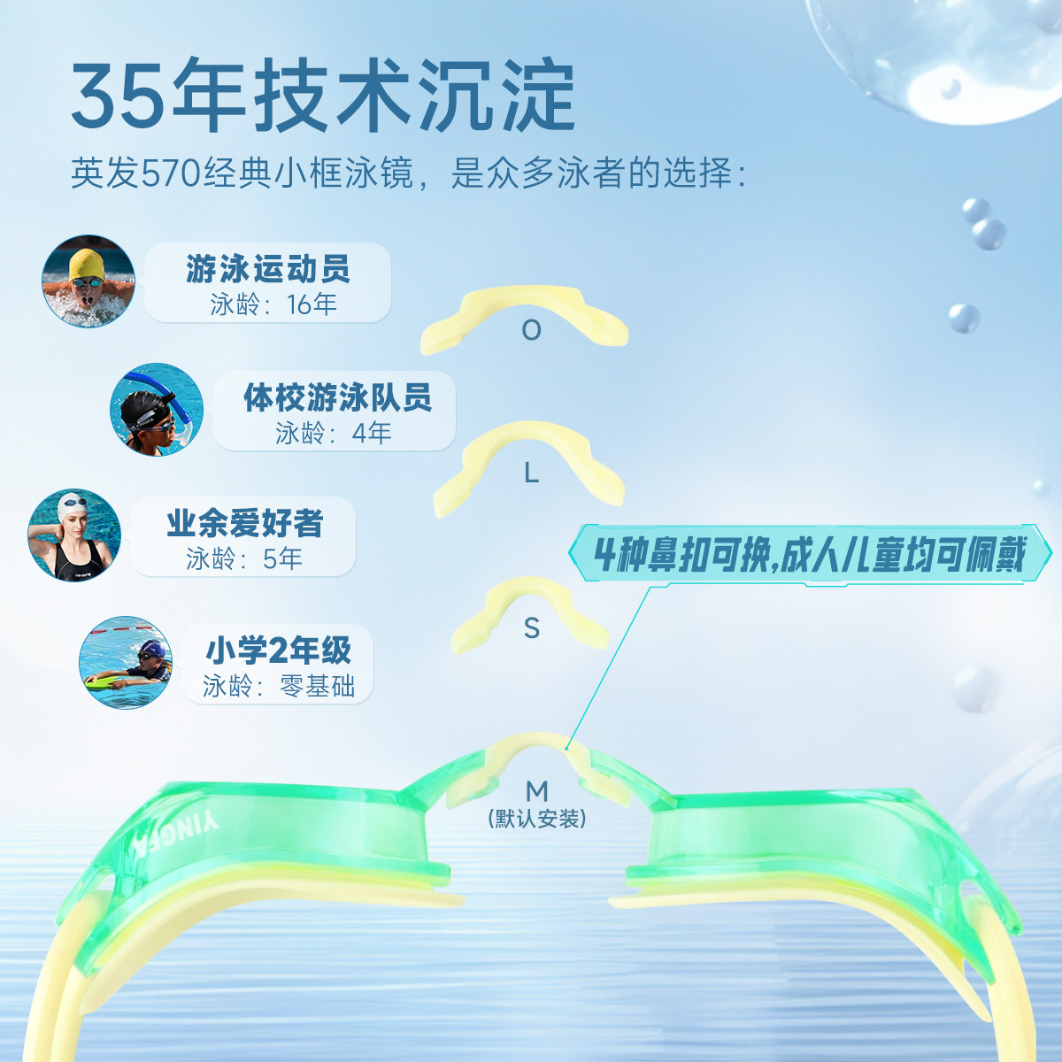 英发儿童泳镜防雾高清游泳眼镜专业竞速成人小框镀膜游泳镜570VA