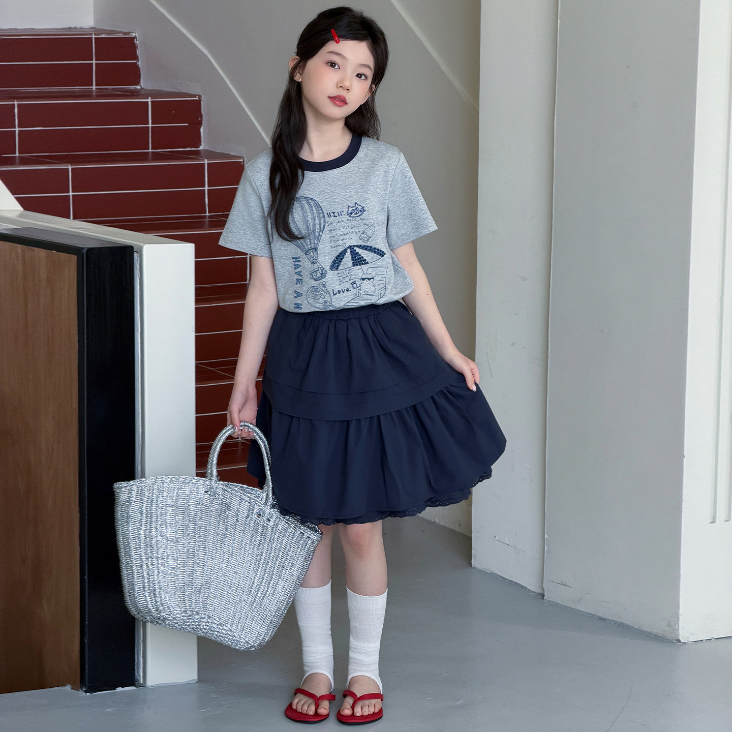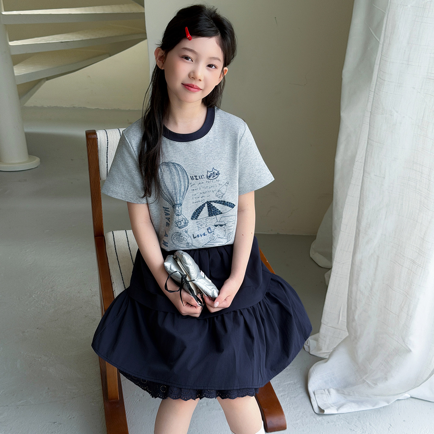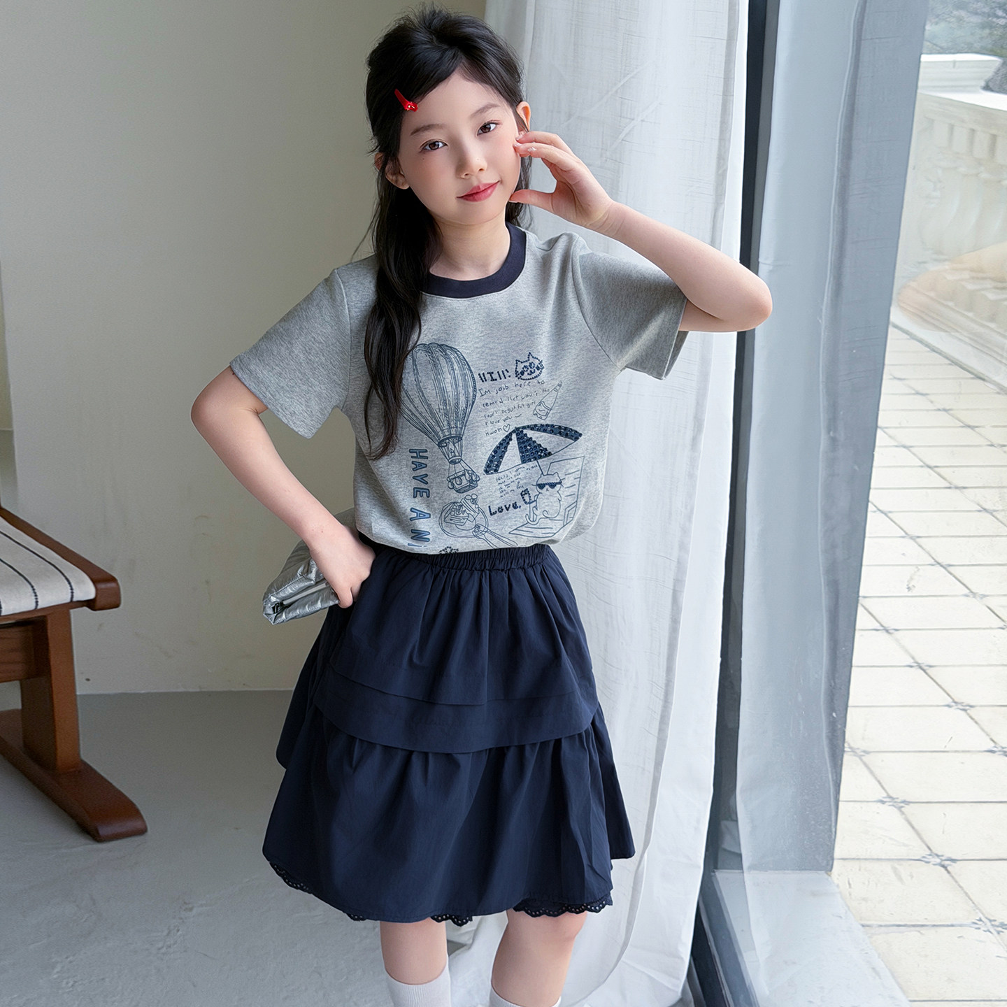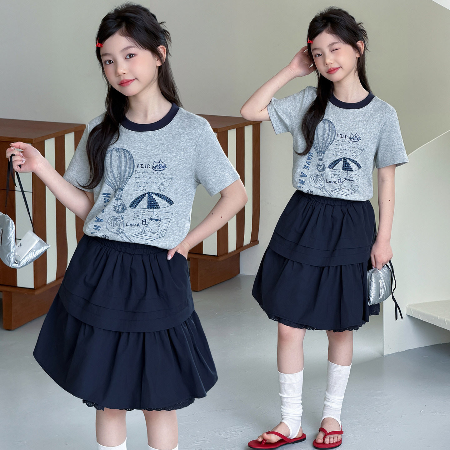 女童短袖t恤套装2026夏季新款今年流行爆款女大童韩系裙子两件套9