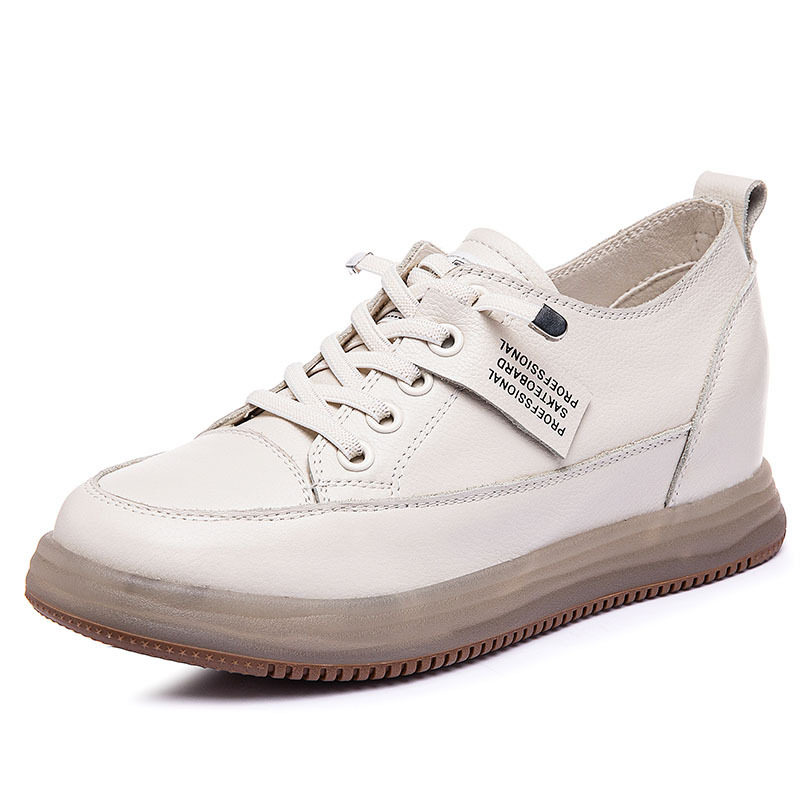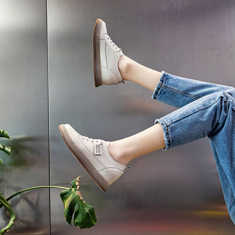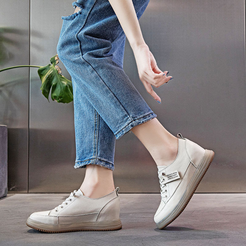 牛筋软底头层牛皮内增高小白鞋女真皮复古平底百搭运动休闲女单鞋
