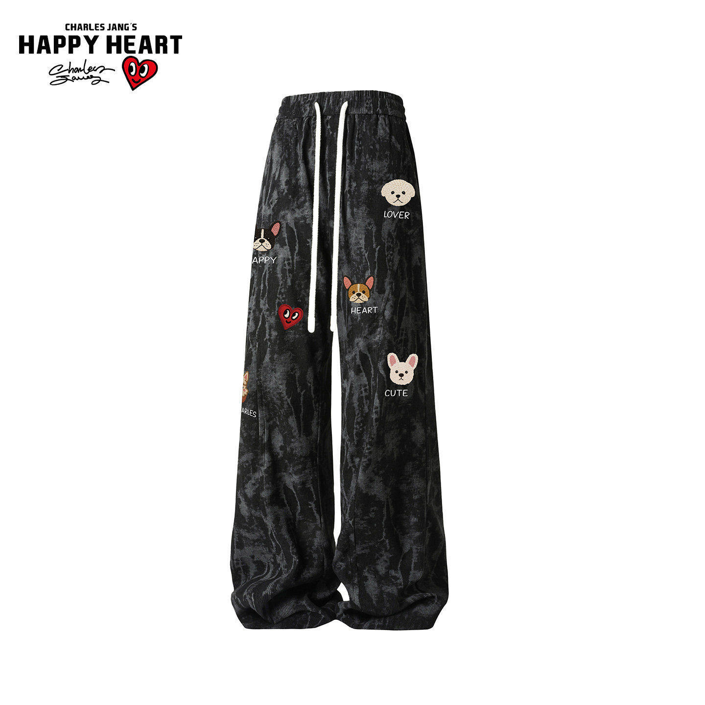 311线报网描述:小狗印花扎染休闲裤男女宽松直筒长裤