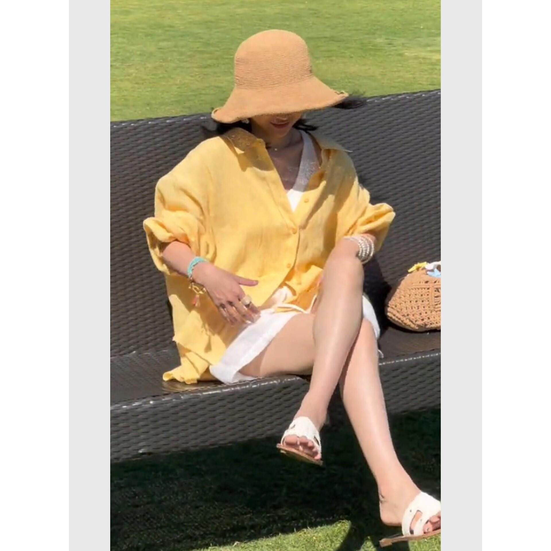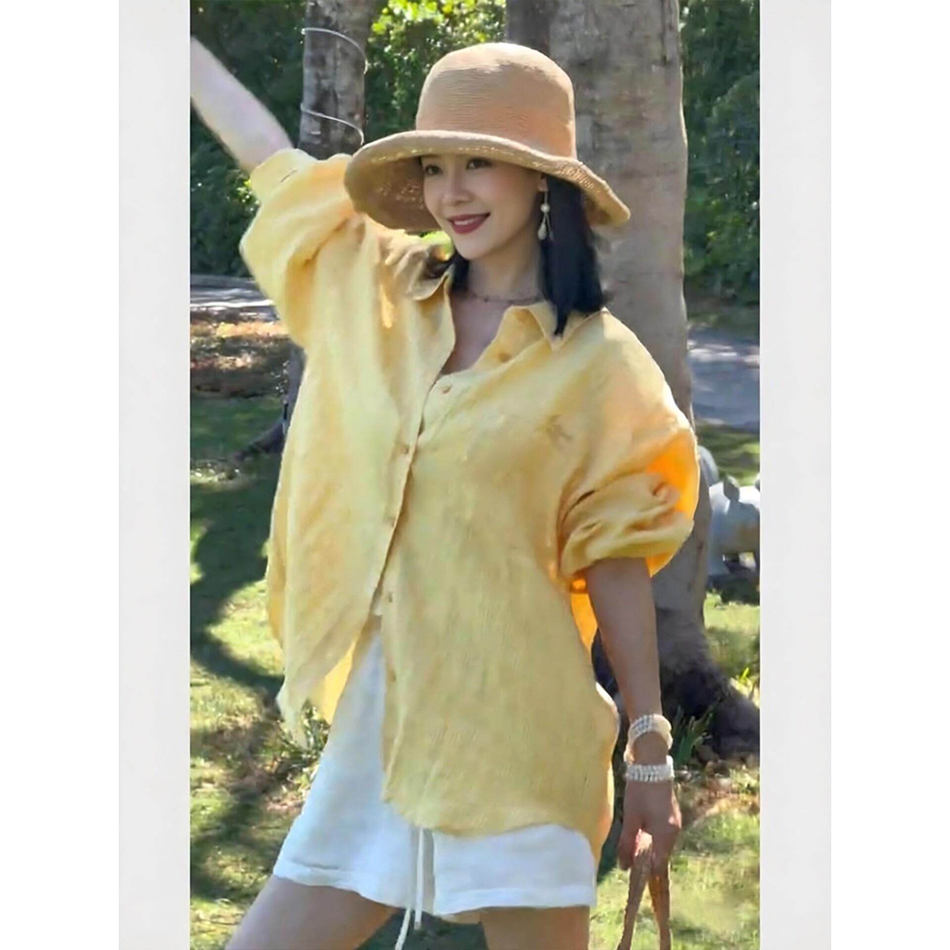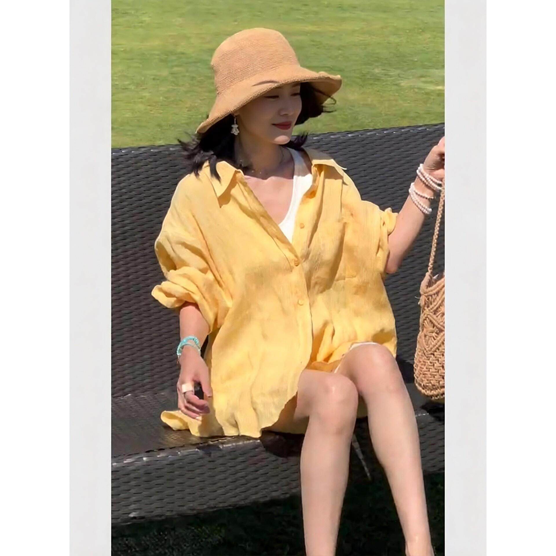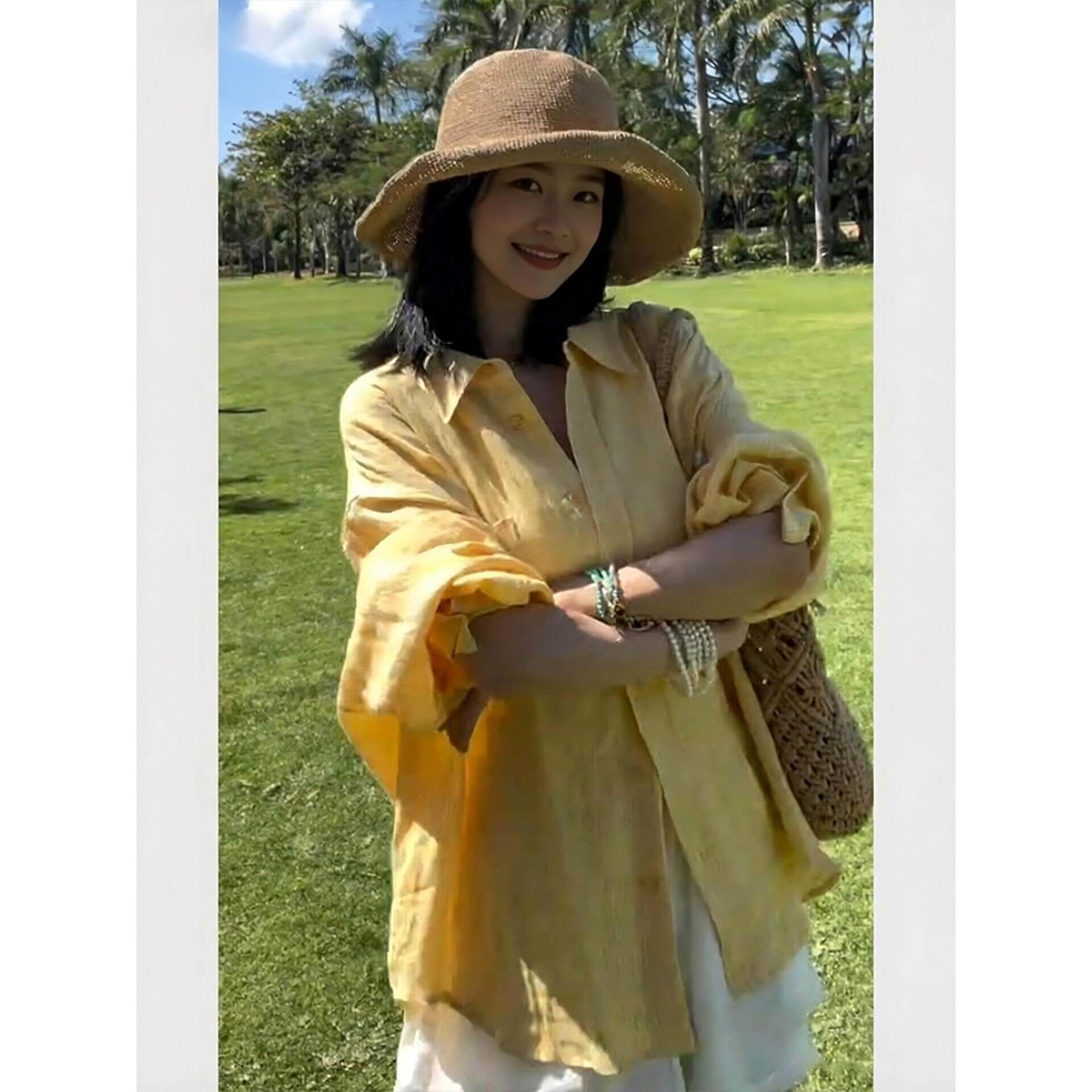黄色棉麻防晒衬衫女款2026新款设计感春装通勤穿搭别致很仙的上衣