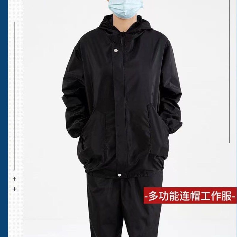 新款防水防尘工作服两件式连帽套装户外养殖务农上班新款耐磨劳保