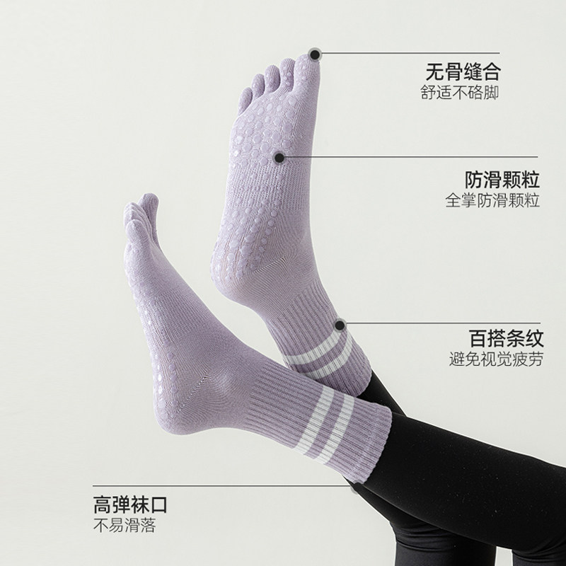 瑜伽袜防滑袜专业女五指袜普拉提袜子夏季中筒室内压力健身运动袜