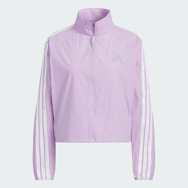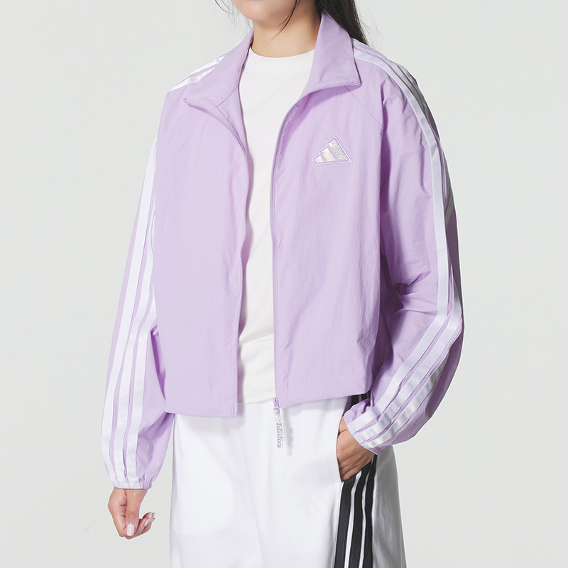 阿迪达斯女款外套春季新款运动服梭织粉色立领宽松版型KC0182