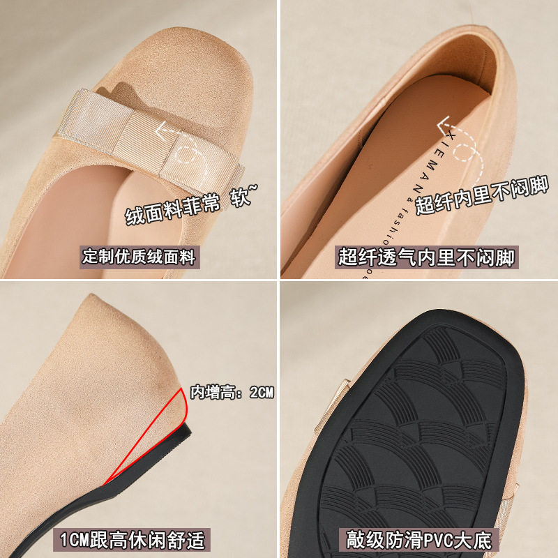 2026春夏新款绒面蝴蝶结内增高女单鞋不累脚软底通勤舒适百搭女鞋