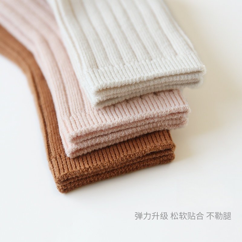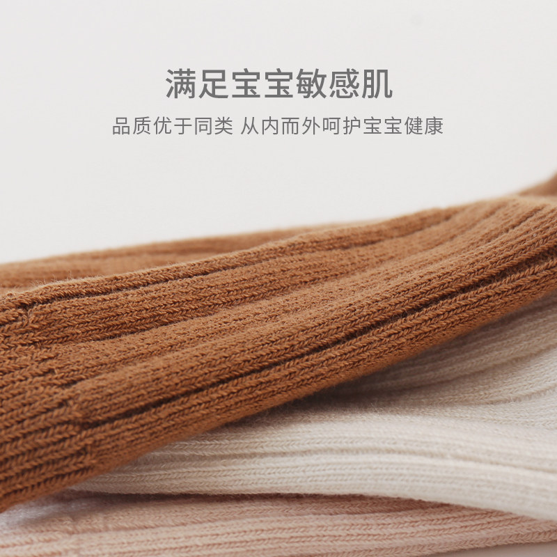 宝宝袜子秋冬季棉松口婴儿春秋款纯色无骨男童女童儿童松口中筒