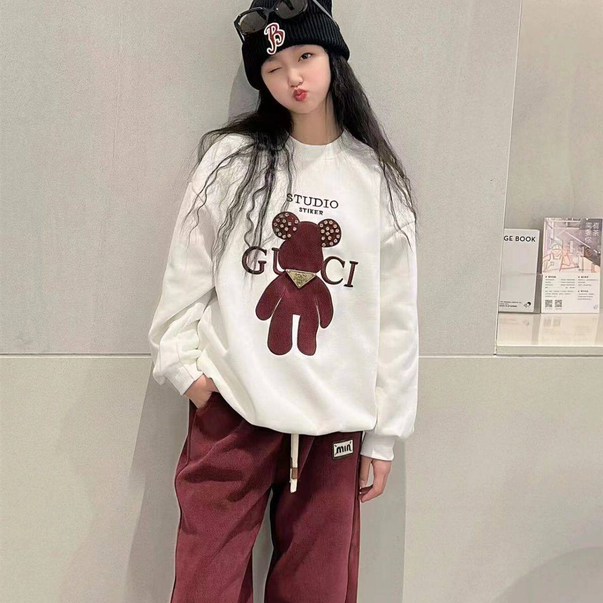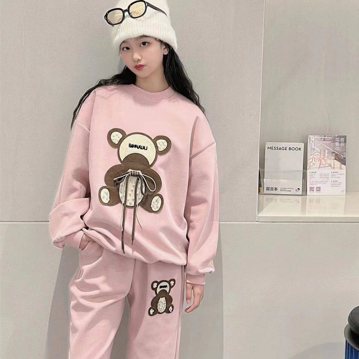 女童不加绒卫衣套装2026新款网红洋气大童秋冬季儿童加厚运动两件