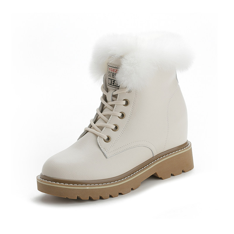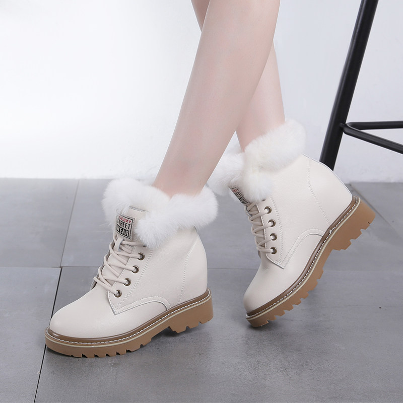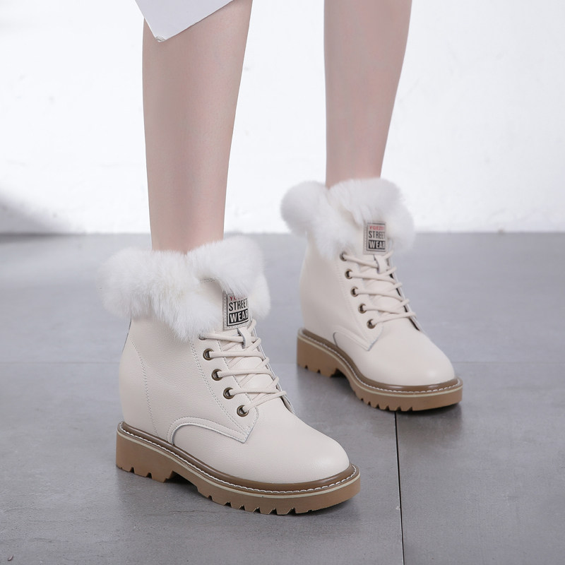 真皮兔毛内增高雪地靴女冬季白色马丁靴厚底毛毛短靴加绒保暖棉鞋
