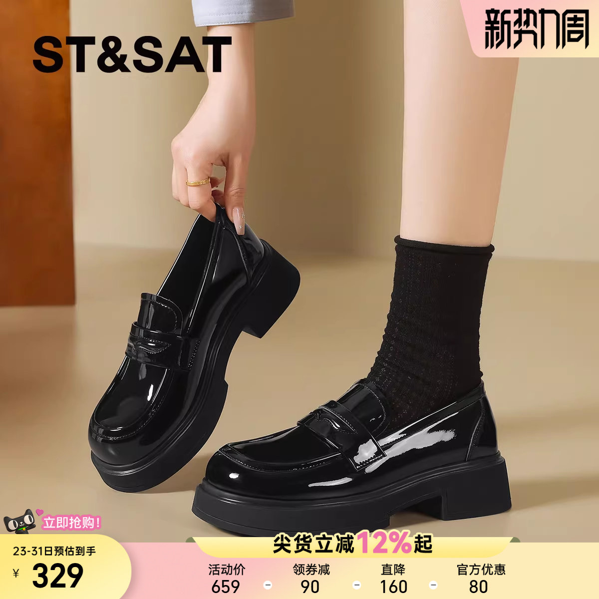 星期六黑色厚底乐福鞋女鞋2026春季新款英伦风粗跟真皮软底小皮鞋