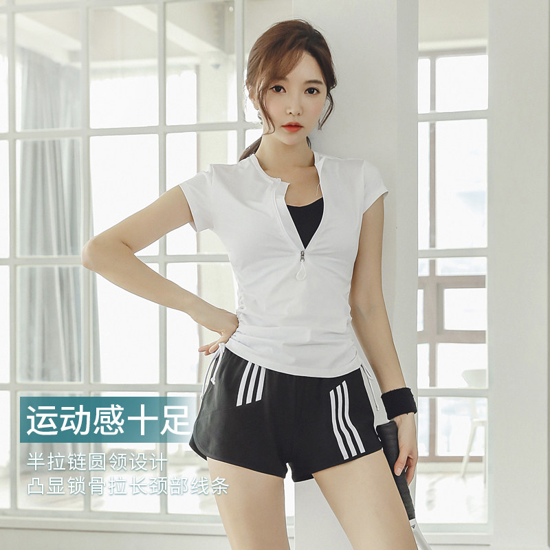 户外跑步套装女夏天打羽毛球网y球晨跑服宽松时尚健身房运动三件