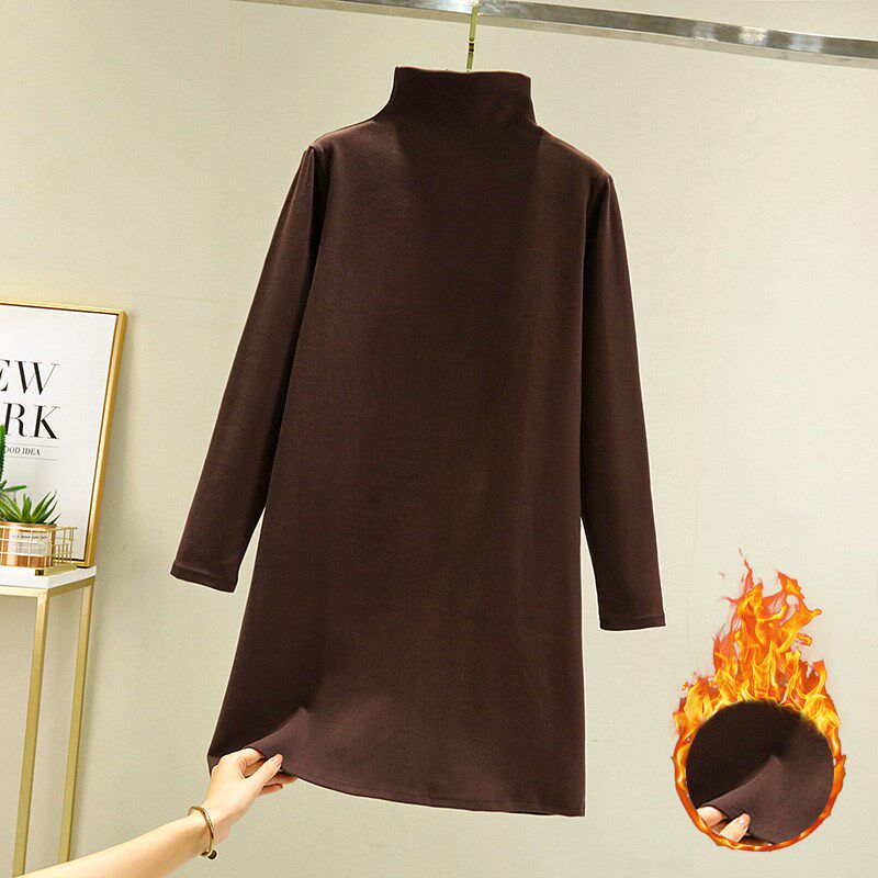 秋冬加绒加厚高领德绒打底衫女宽松中长款连衣裙大码保暖长袖t恤