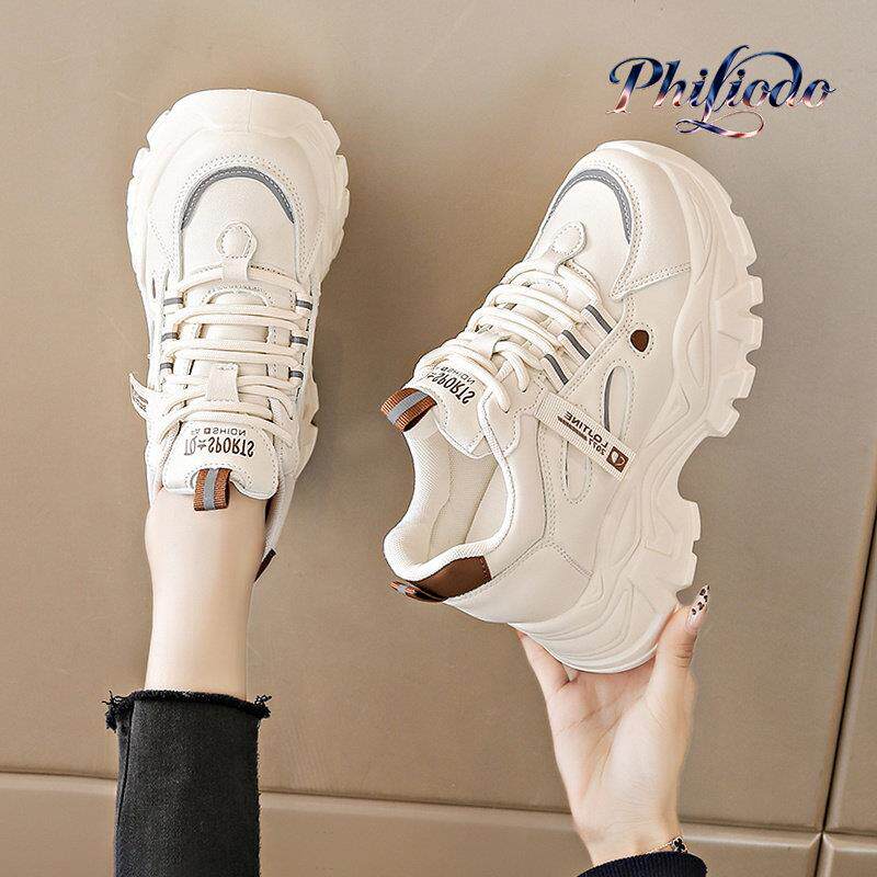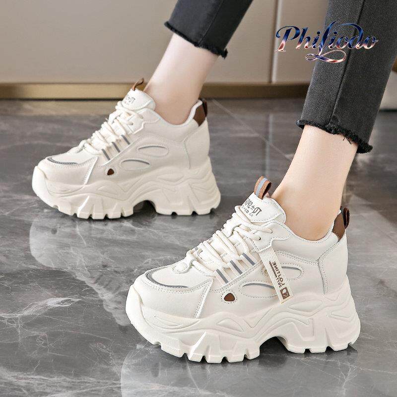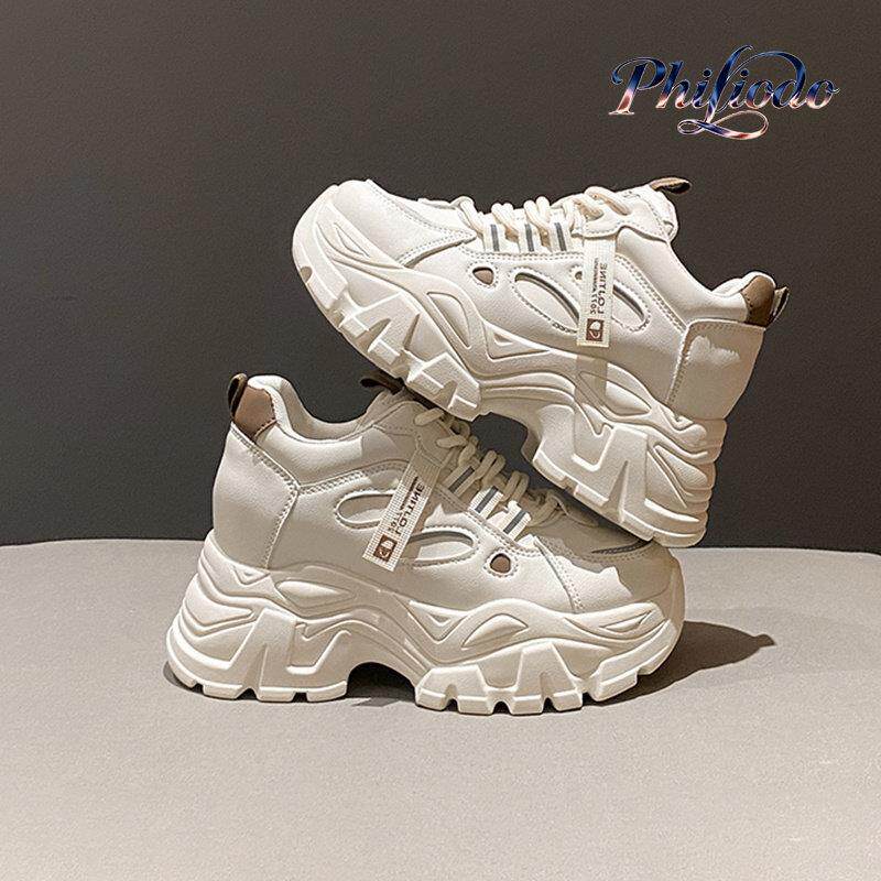 PHILIODO真皮小白鞋小个子厚底老爹鞋2025新款时尚内增高运动鞋女