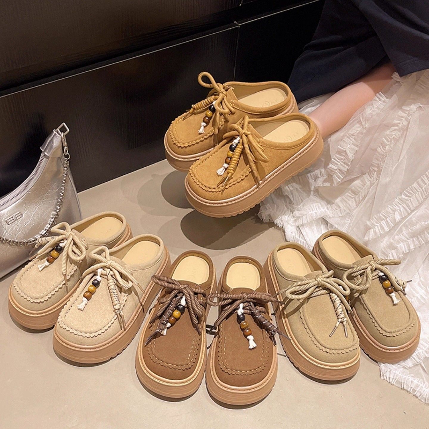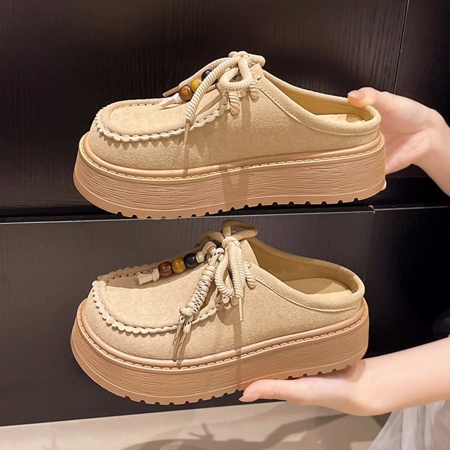 厚底勃肯鞋包头半拖鞋女外穿一脚蹬增高夏秋季2026新款配裙子凉鞋