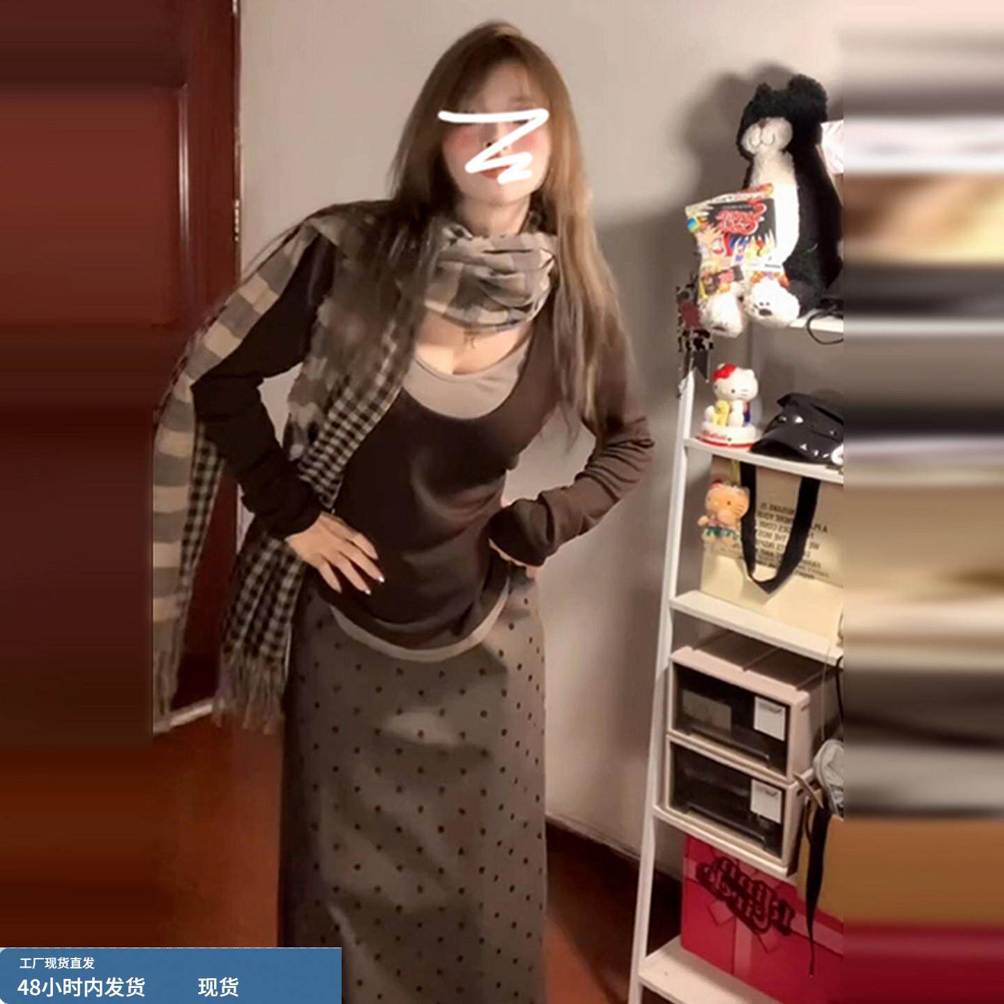 假两件针织套装连衣裙子女春季2026新款超火早春韩系穿搭配一整套