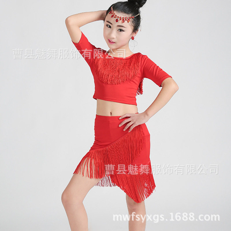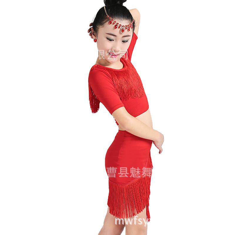 儿童拉丁舞服装夏女成人练习新款舞蹈流苏裙套装广场演出服夏季