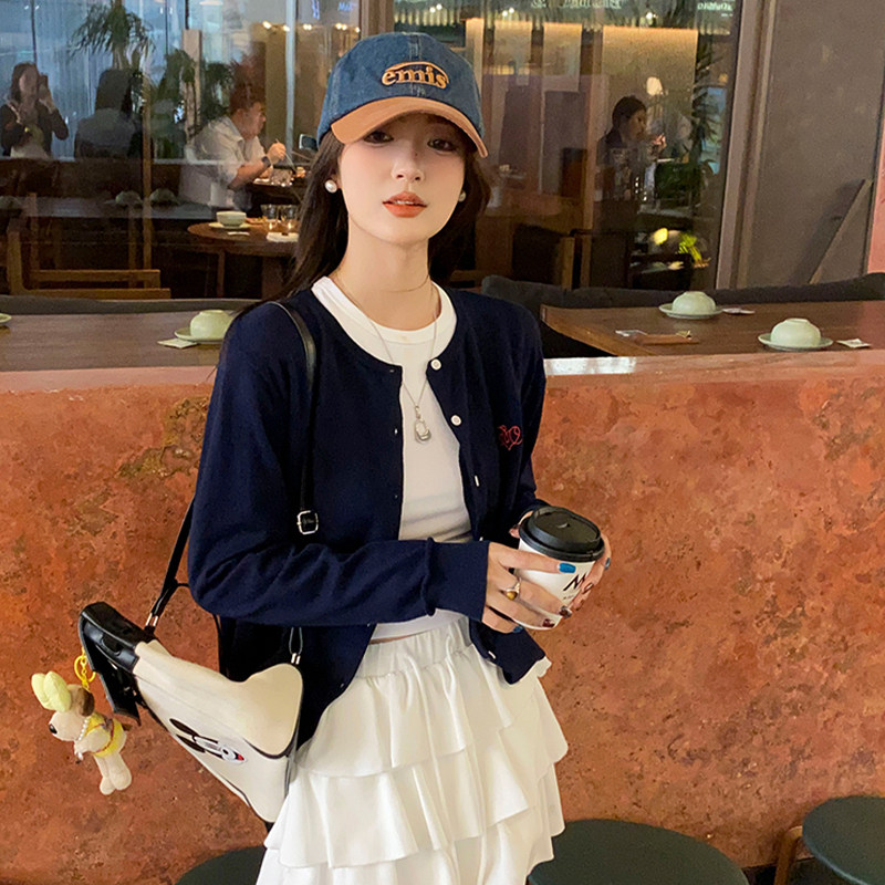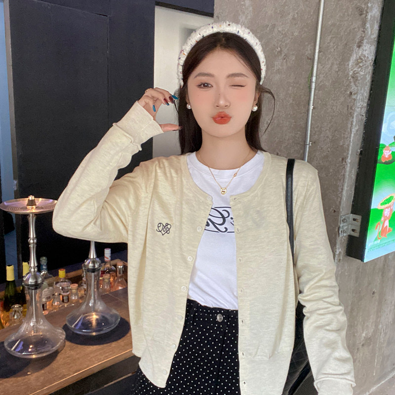 龙妹家杏色针织开衫外套女外穿2026早春新款韩系穿搭薄款宽松上衣