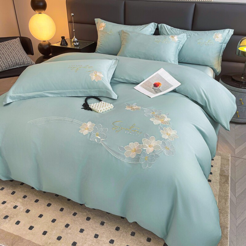 纯棉四件套结婚刺绣全棉床单被套新疆长绒棉绣花高端床品四季通用