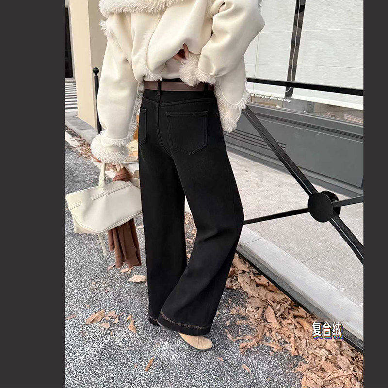 爆犀牛2025冬季新款加绒加厚高腰阔腿牛仔裤女显瘦宽松直筒裤长裤