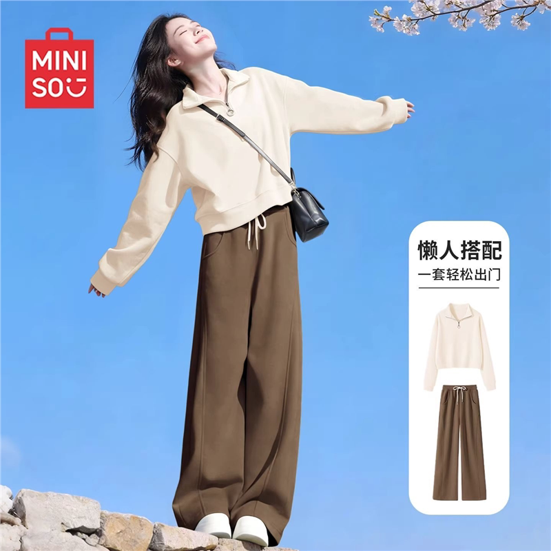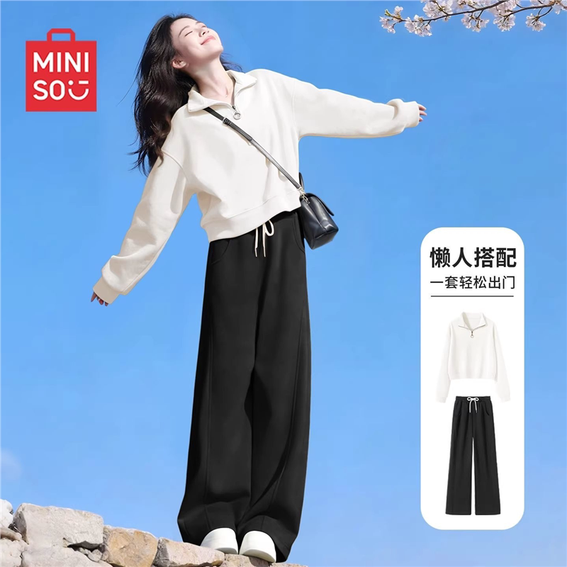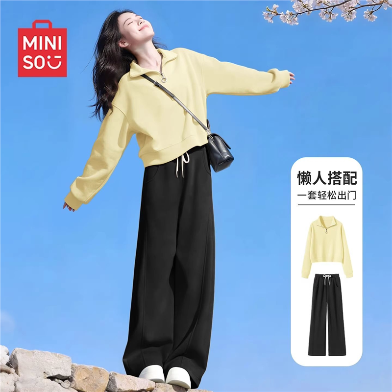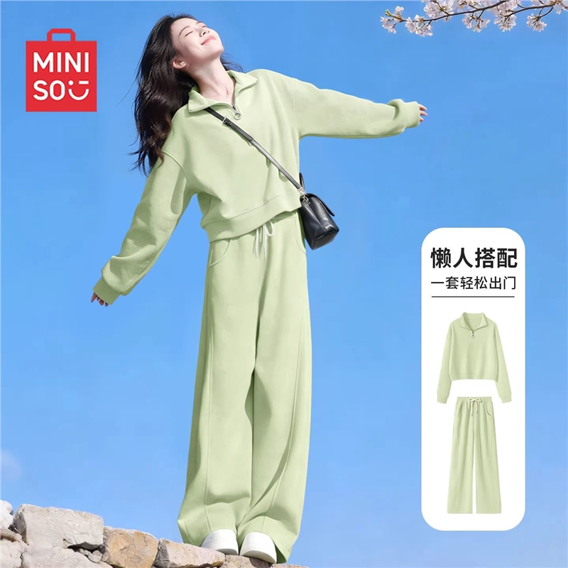 名创优品灰色运动套装女2026新款早春女装高中生卫衣裤子两件套D