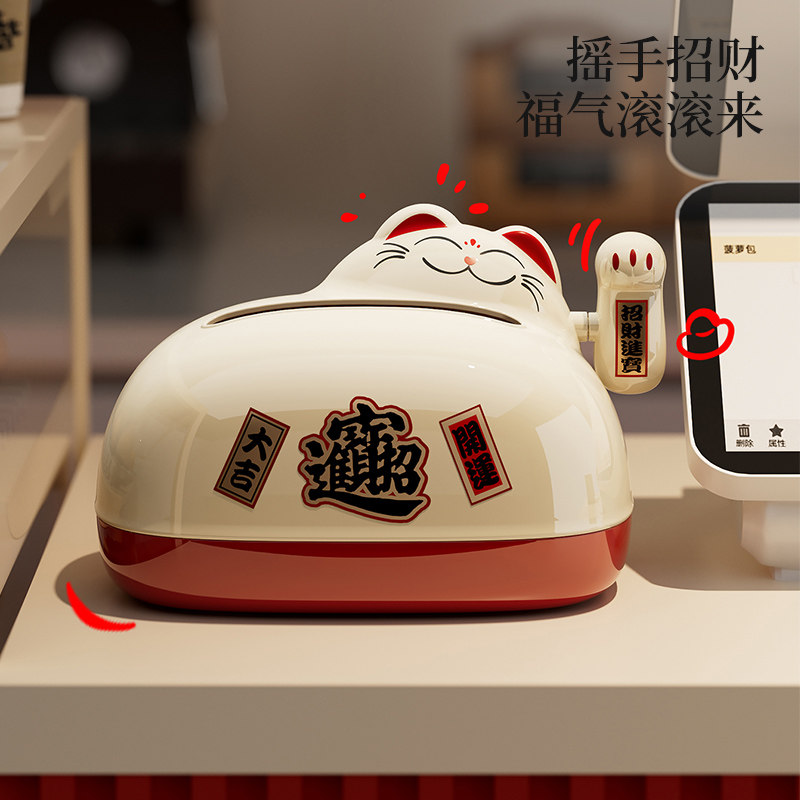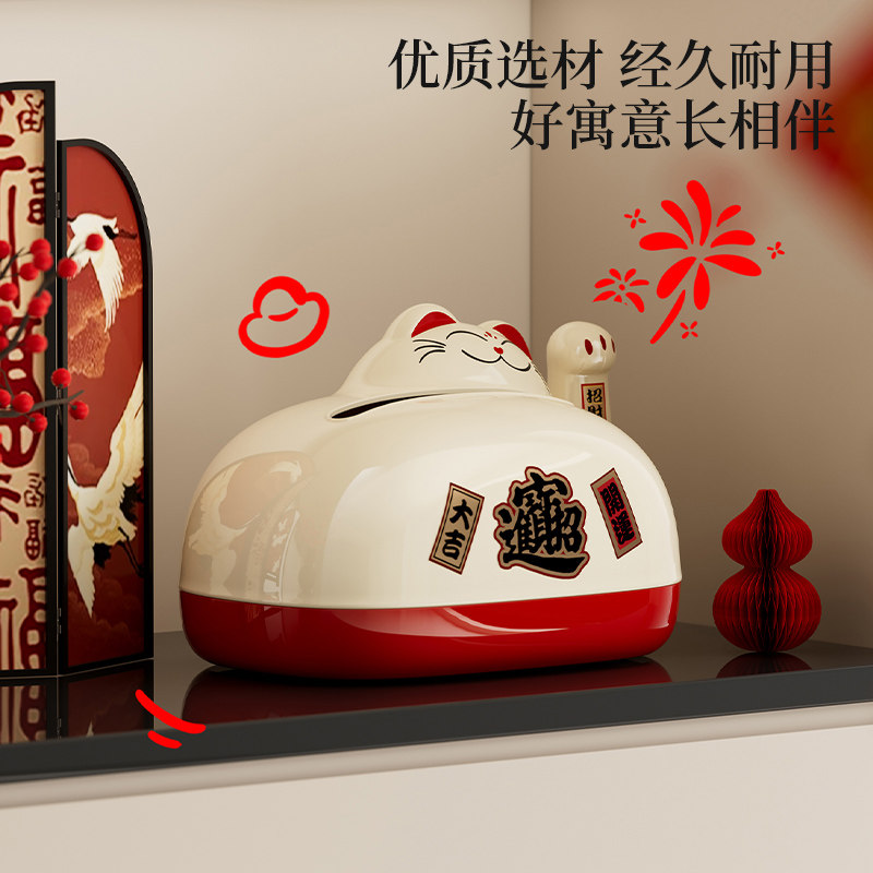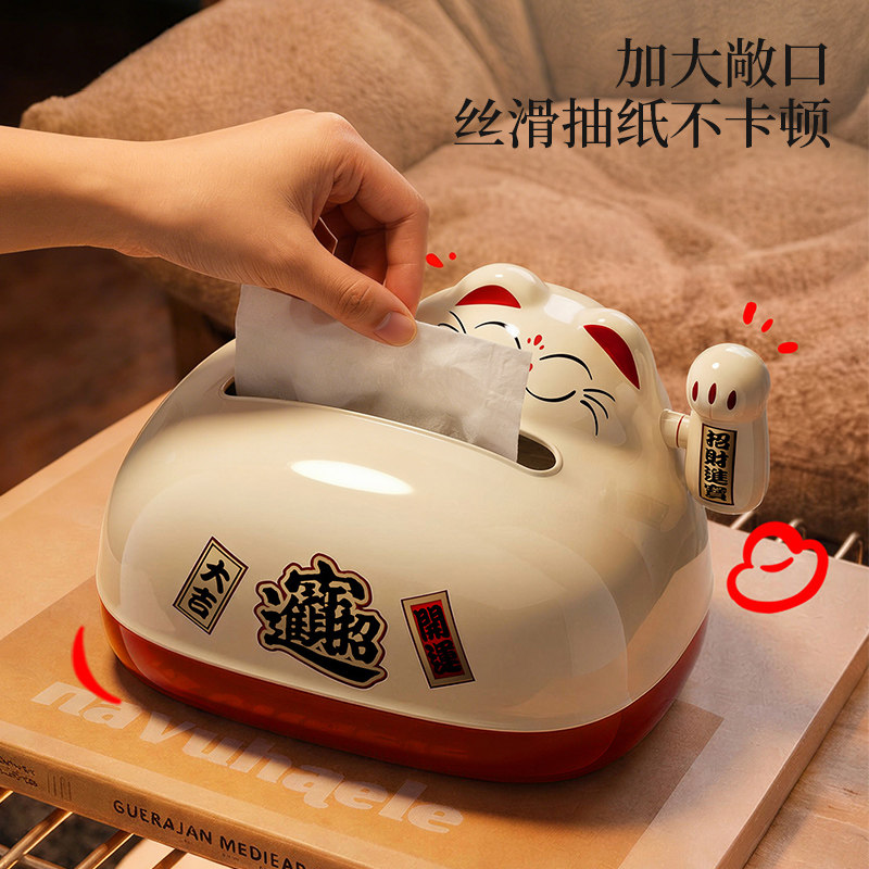 招财猫纸巾盒家用客厅桌面大容量弹簧抽纸盒创意可爱餐纸巾收纳盒