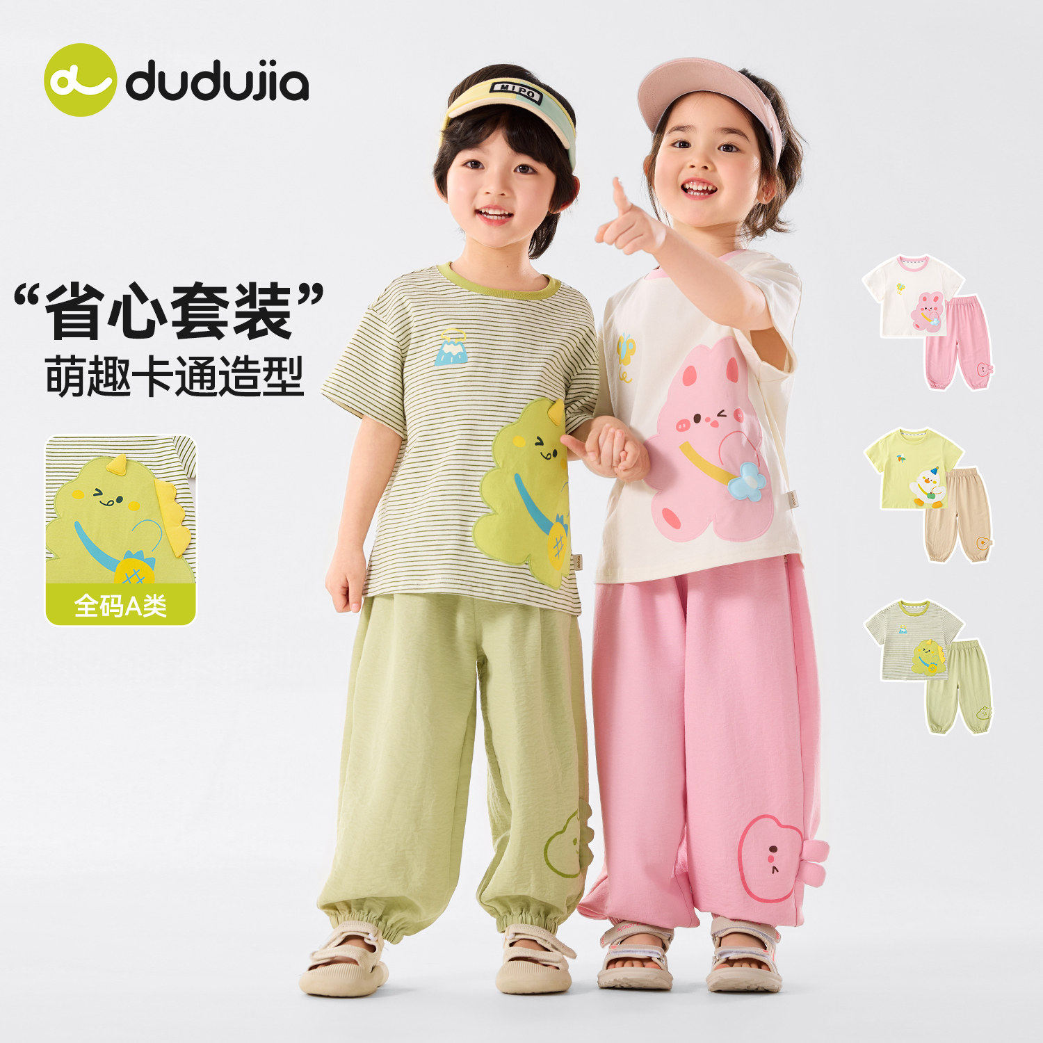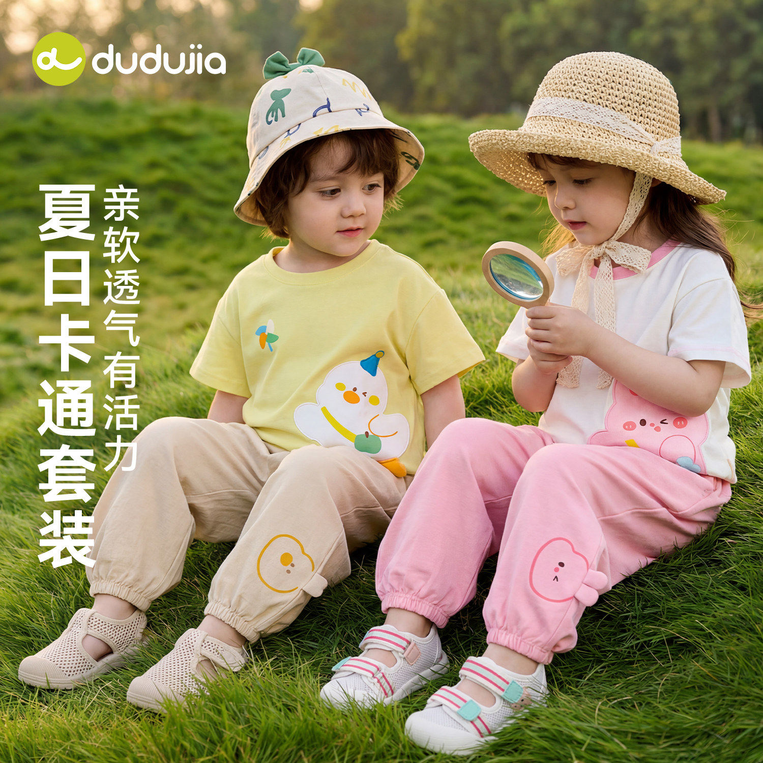 嘟嘟家男童套装夏季儿童短袖T恤女童裤子宝宝薄款上衣长裤夏装新