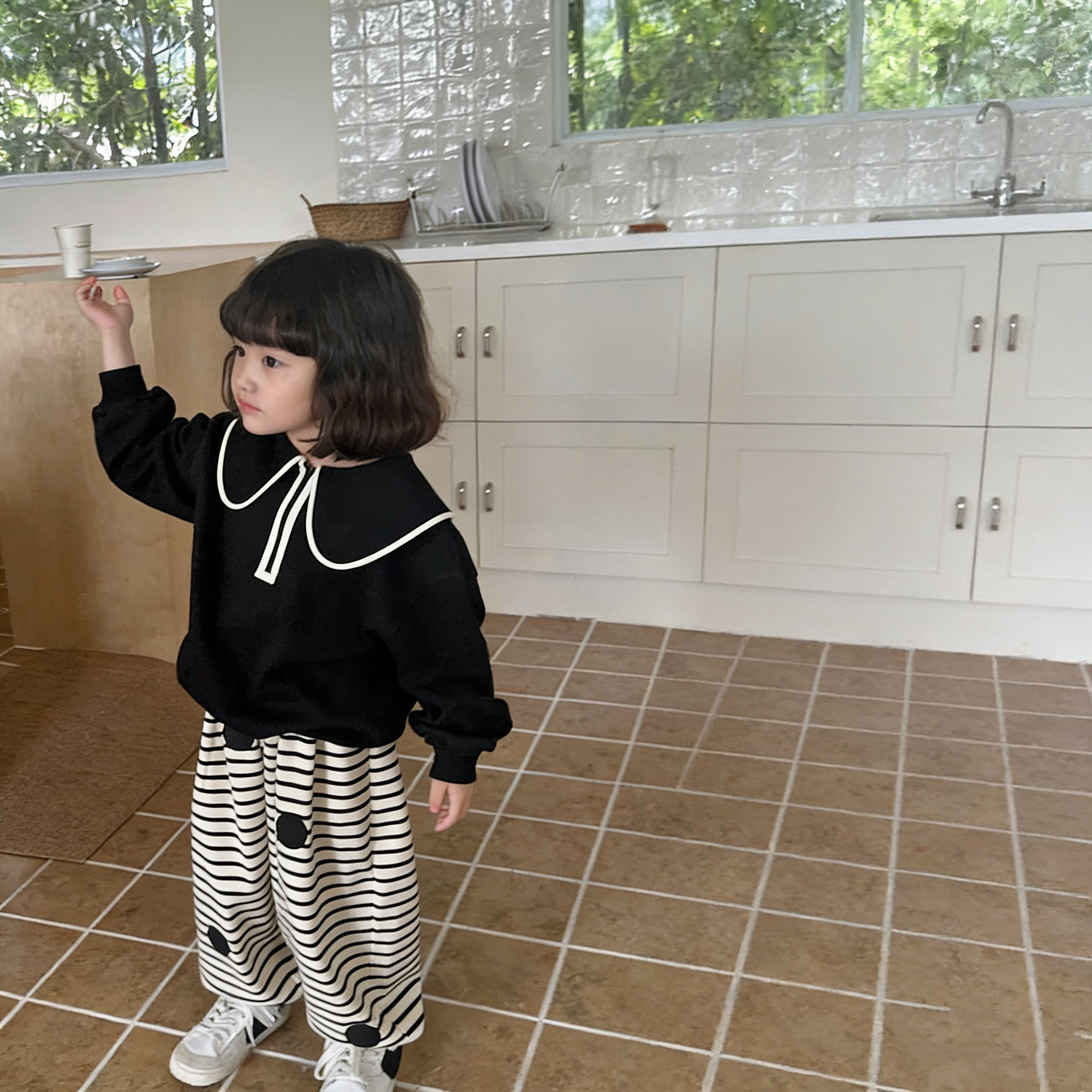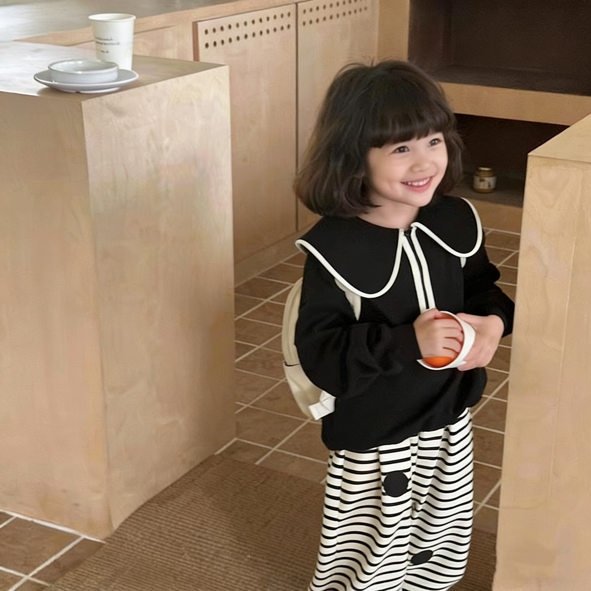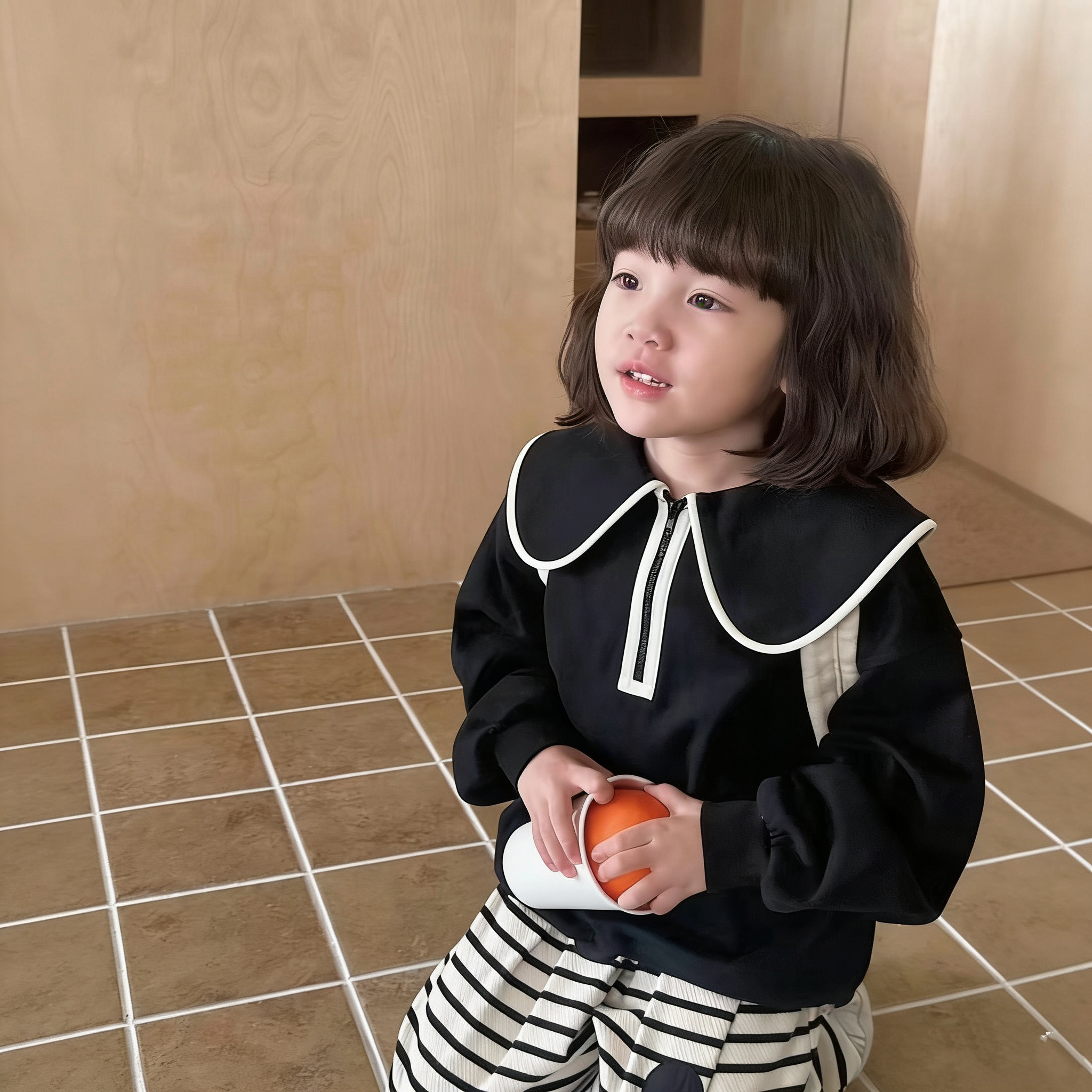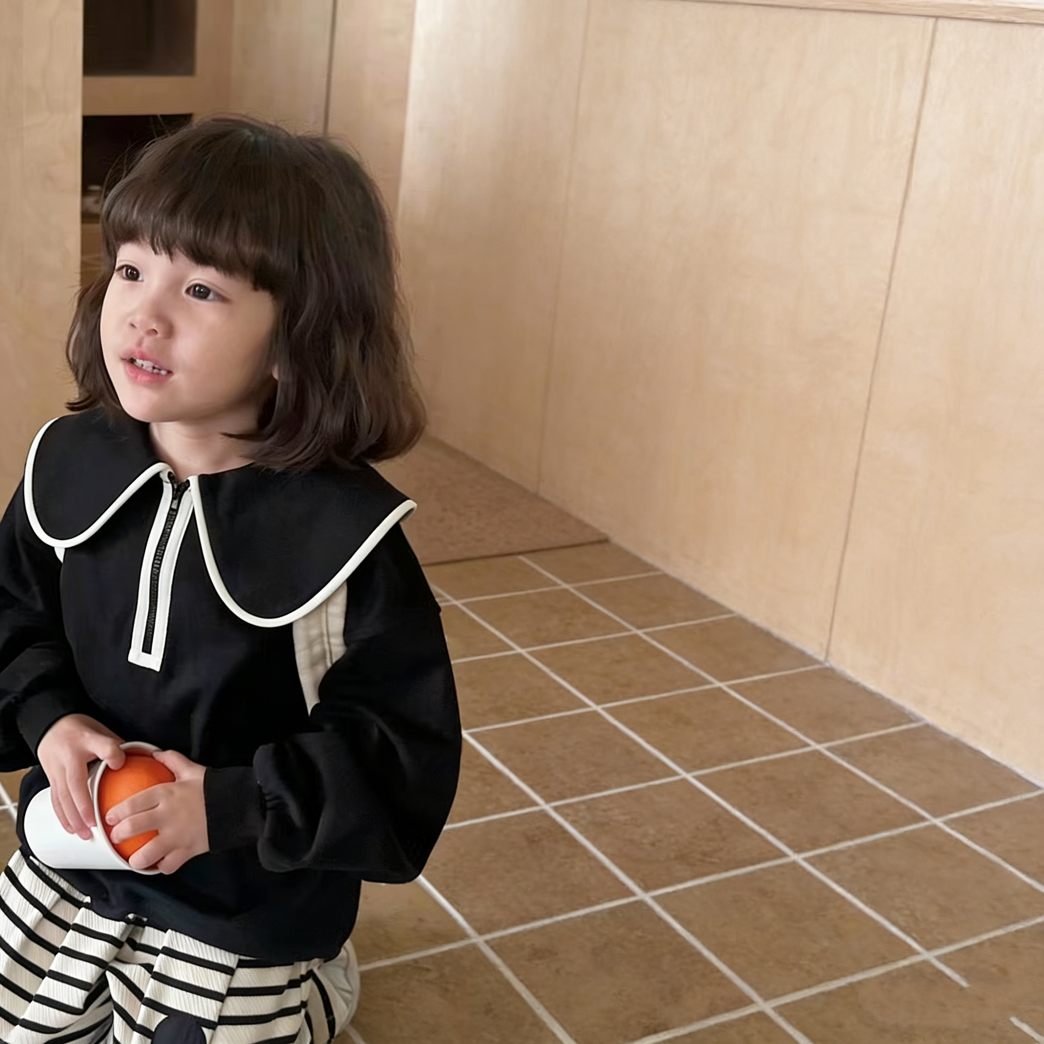 韩版女童薄款卫衣春秋长袖上衣女宝宝黑色百搭套头衫洋气时髦潮