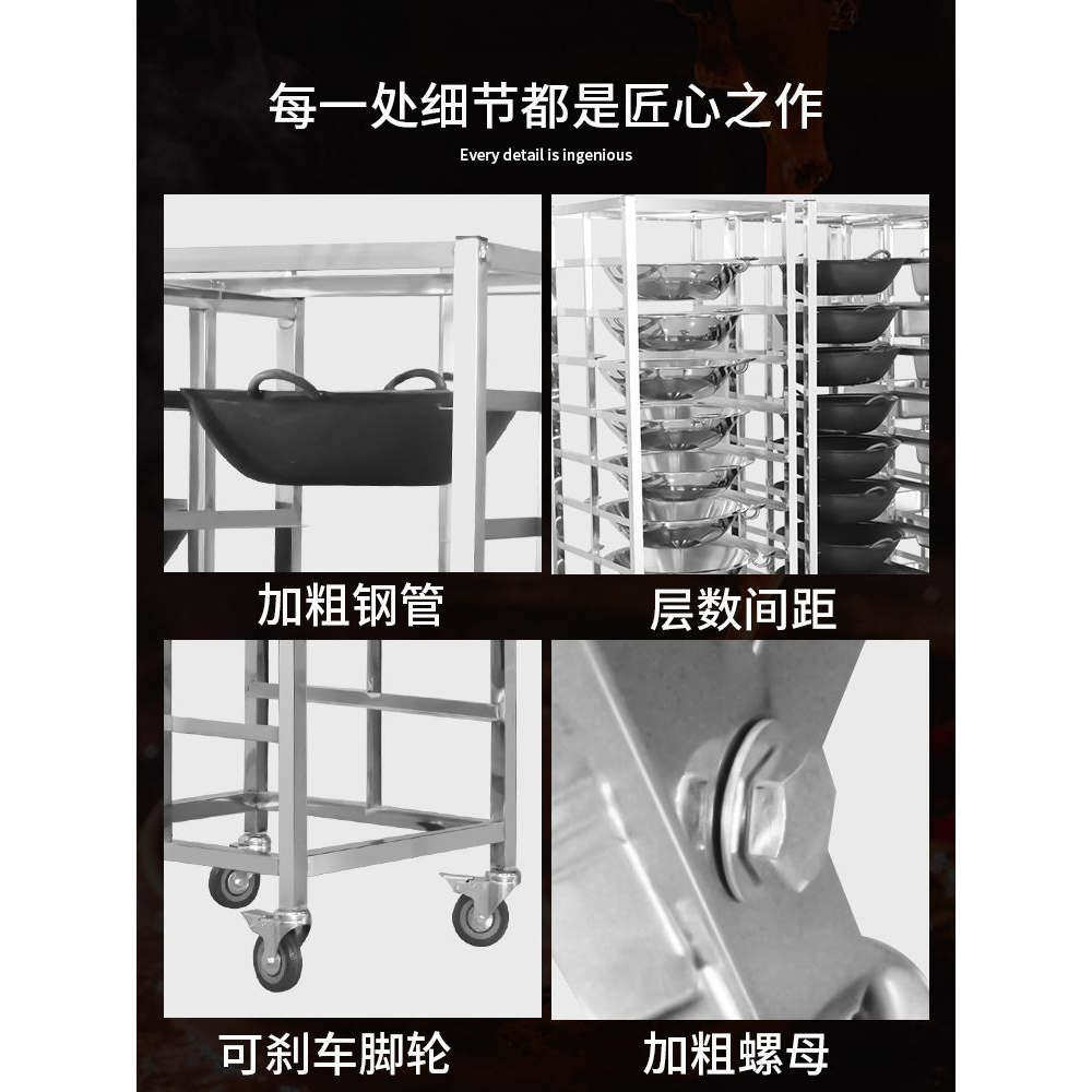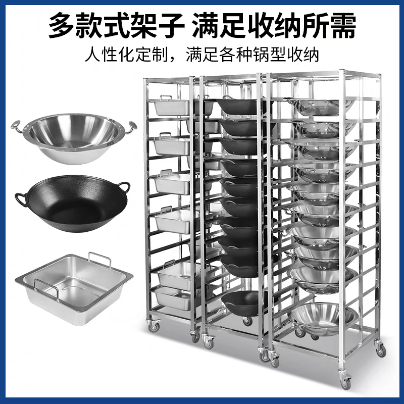 多层可移动不锈钢火锅架商用厨房锅具收纳架稳固承重置物架