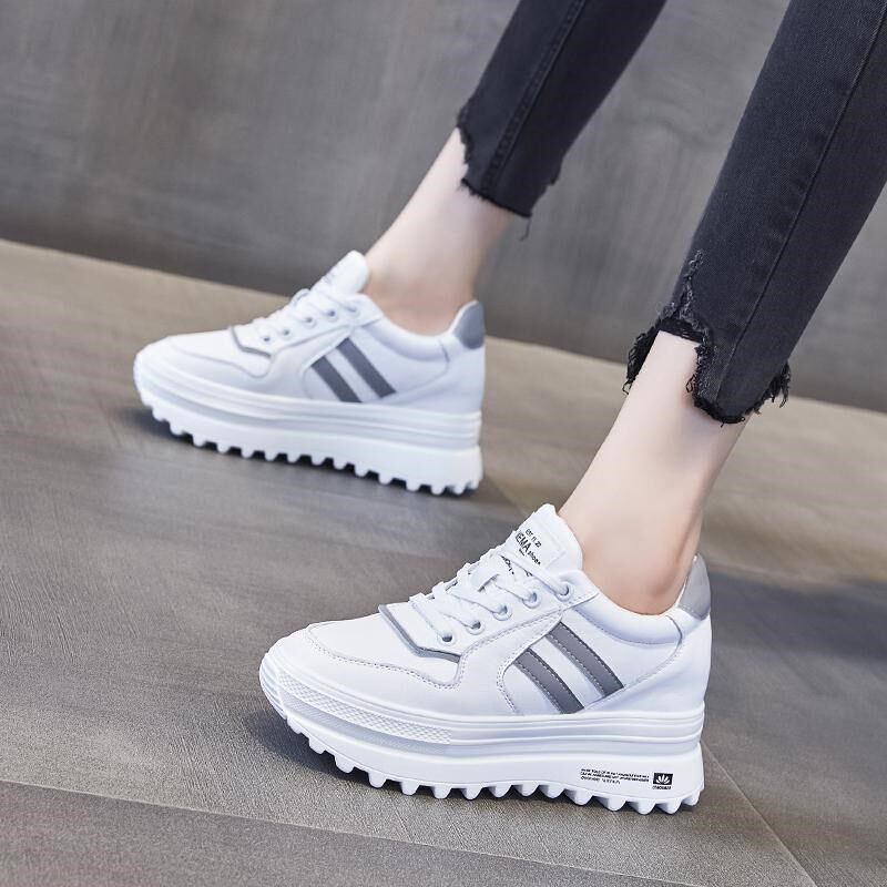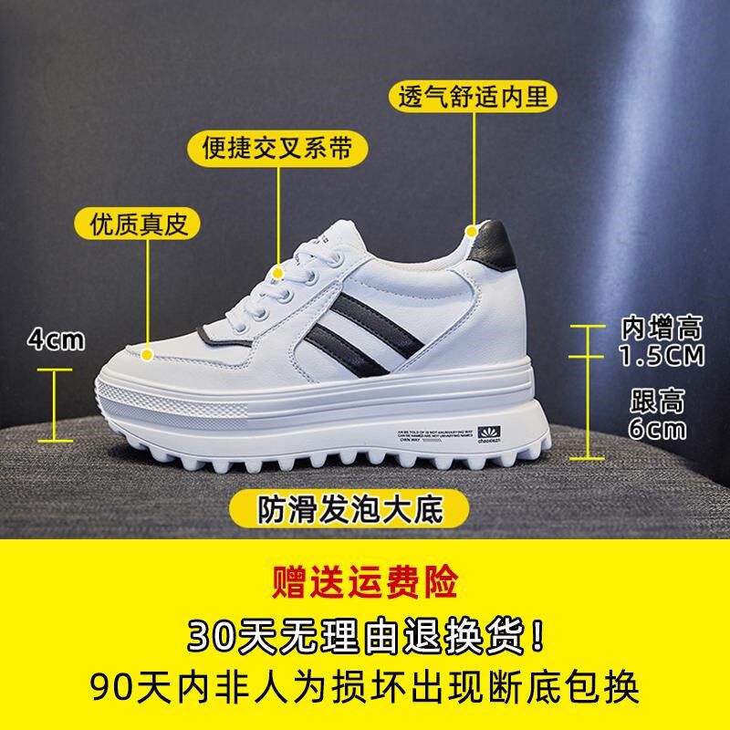 内增高女鞋爆款202p5新款厚底百搭轻便真皮运动鞋小个子防滑小白