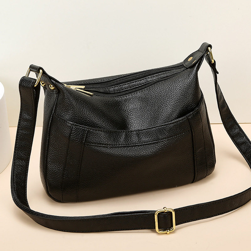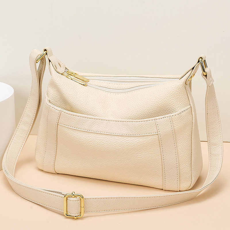 日本进口真皮女包大容量斜挎包新款简约通勤单肩包头层牛皮妈妈包