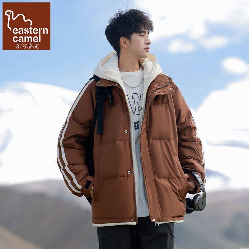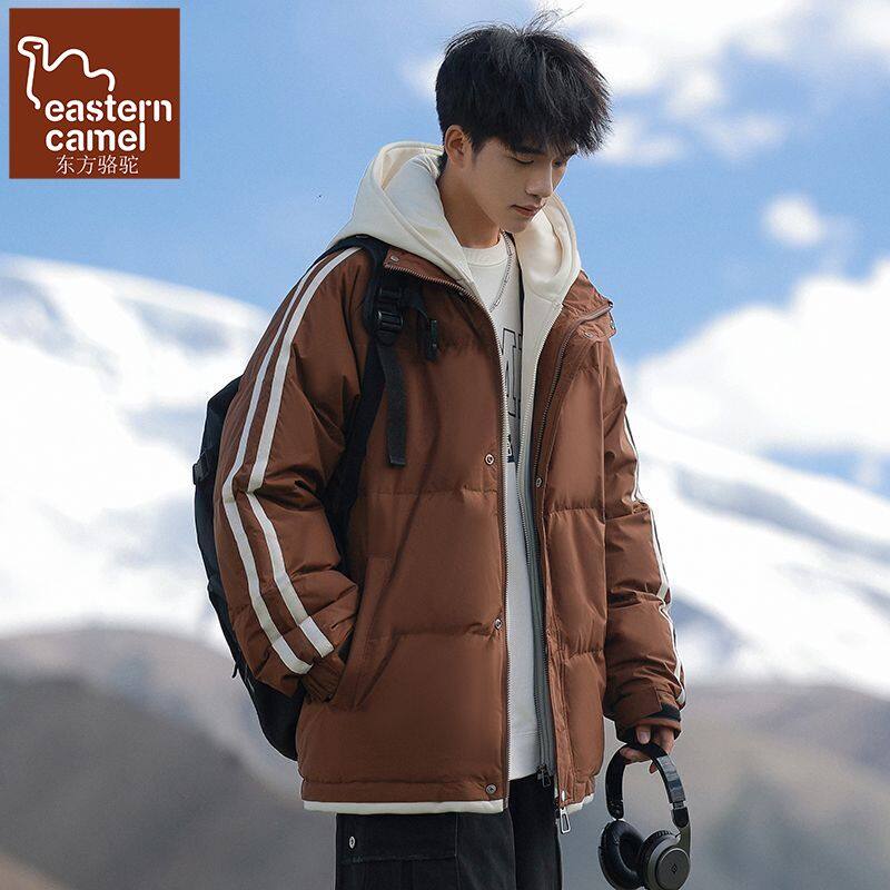 东方骆驼羽绒服男冬季加厚2026新款连帽外套青少年短款保暖防寒服
